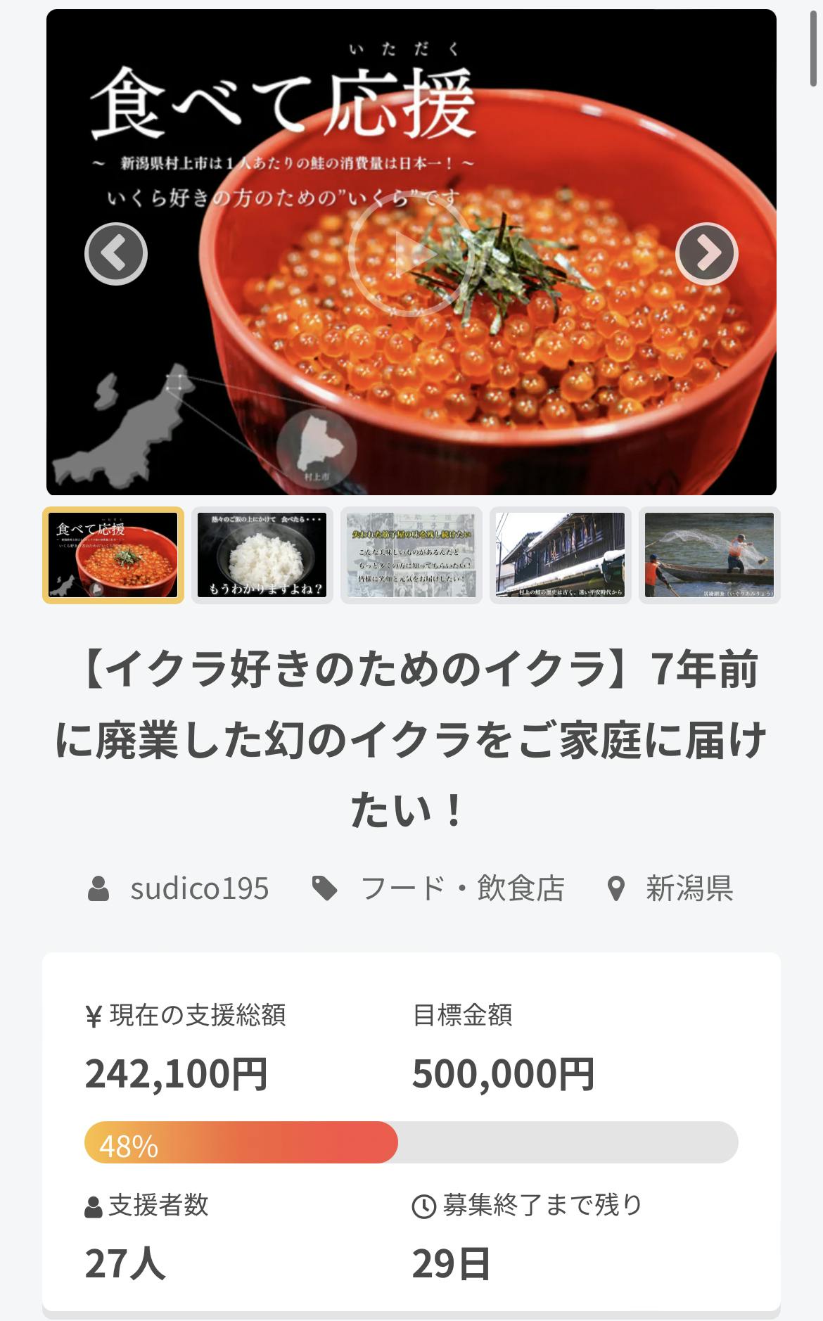 ですが、大口のご支援者が登場して下さったことも有り、有難いことに、本日は人の方々から計242,100円のご支援を頂き、達成率は既に48%です! 凄い!凄い!