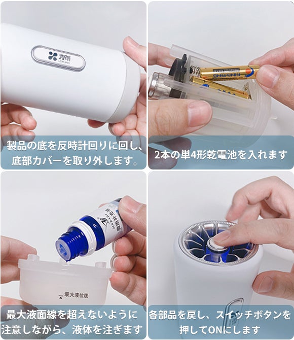 ※単4電池、アロマテラピーの液は付属していませんのでお客様でご用意ください。