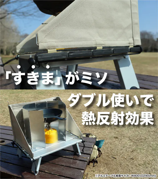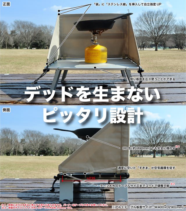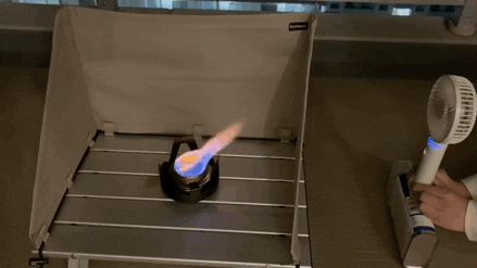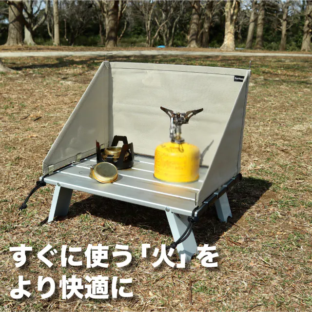 「テーブル上で、風の影響を受けづらく確実な火力を得るためのスクリーンを」