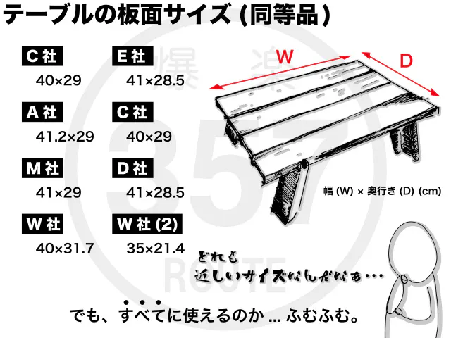 ※快適にご使用いただく為、お使いの「アルミテーブル」寸法をご確認ください。