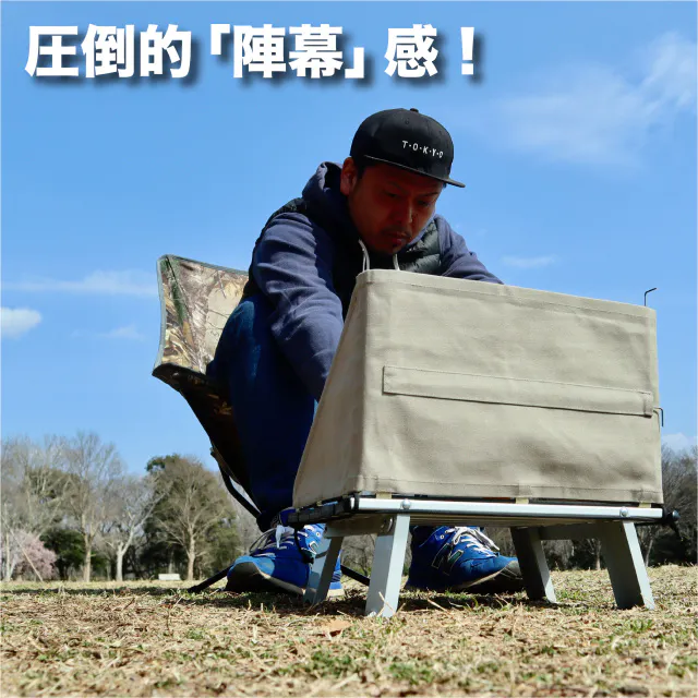 パラフィン帆布独特の「ギア」感で、キャンプに雰囲気を持たせます!!