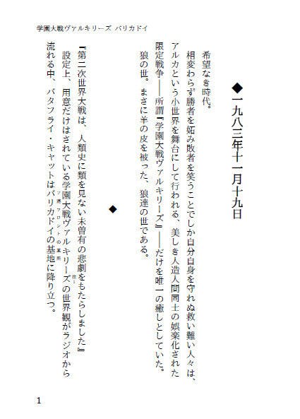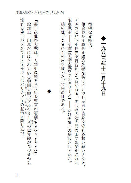 新作小説同人誌『学園大戦ヴァルキリーズ バリカドイ』本編の