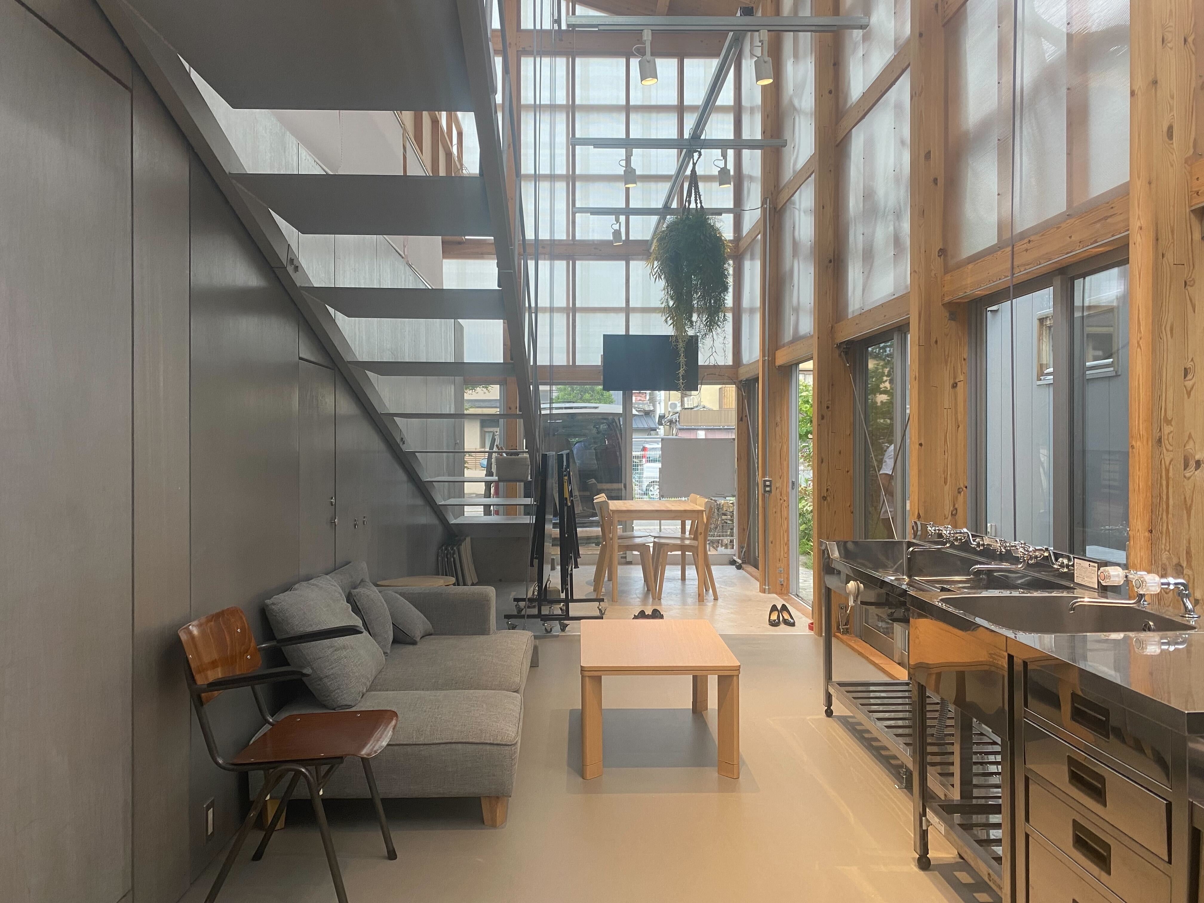 →本施設は住居, オフィス, 作業スペース, 打合スペースを兼ね備えているため、大幅にランニングコストを下げる事が可能であり、1つの場所で全て完結するため、事業醸成に集中できます。