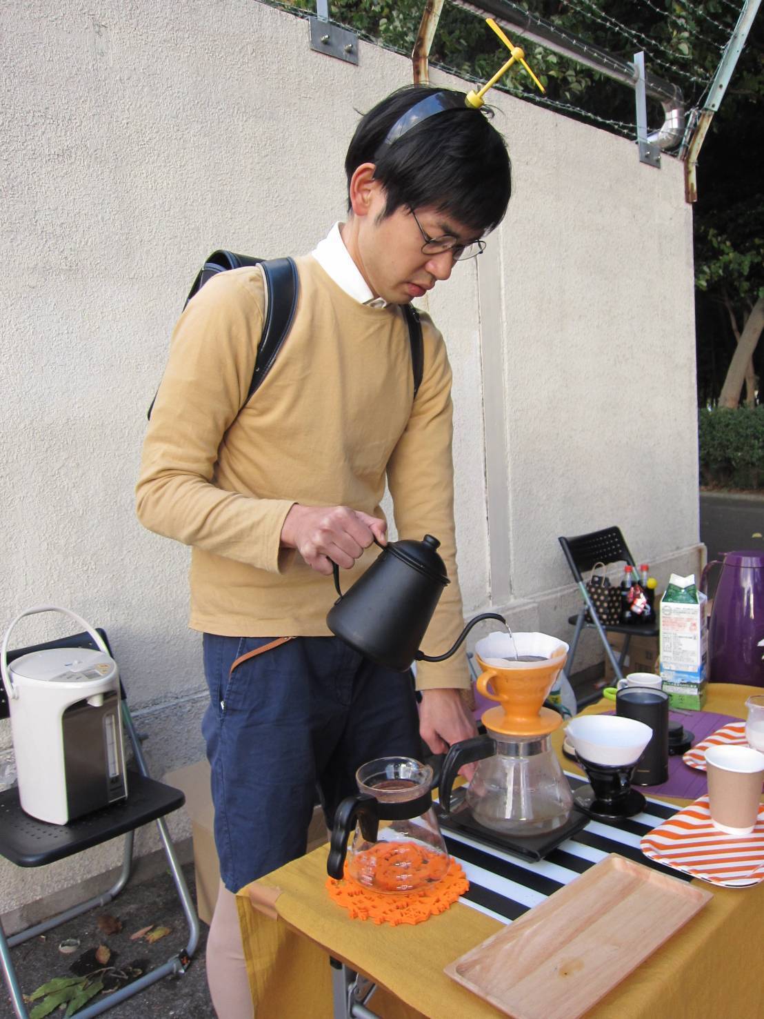年に一度は妻の英語教室のハロウィーンパーティで仮装をしてコーヒーを淹れるのが恒例行事でした。