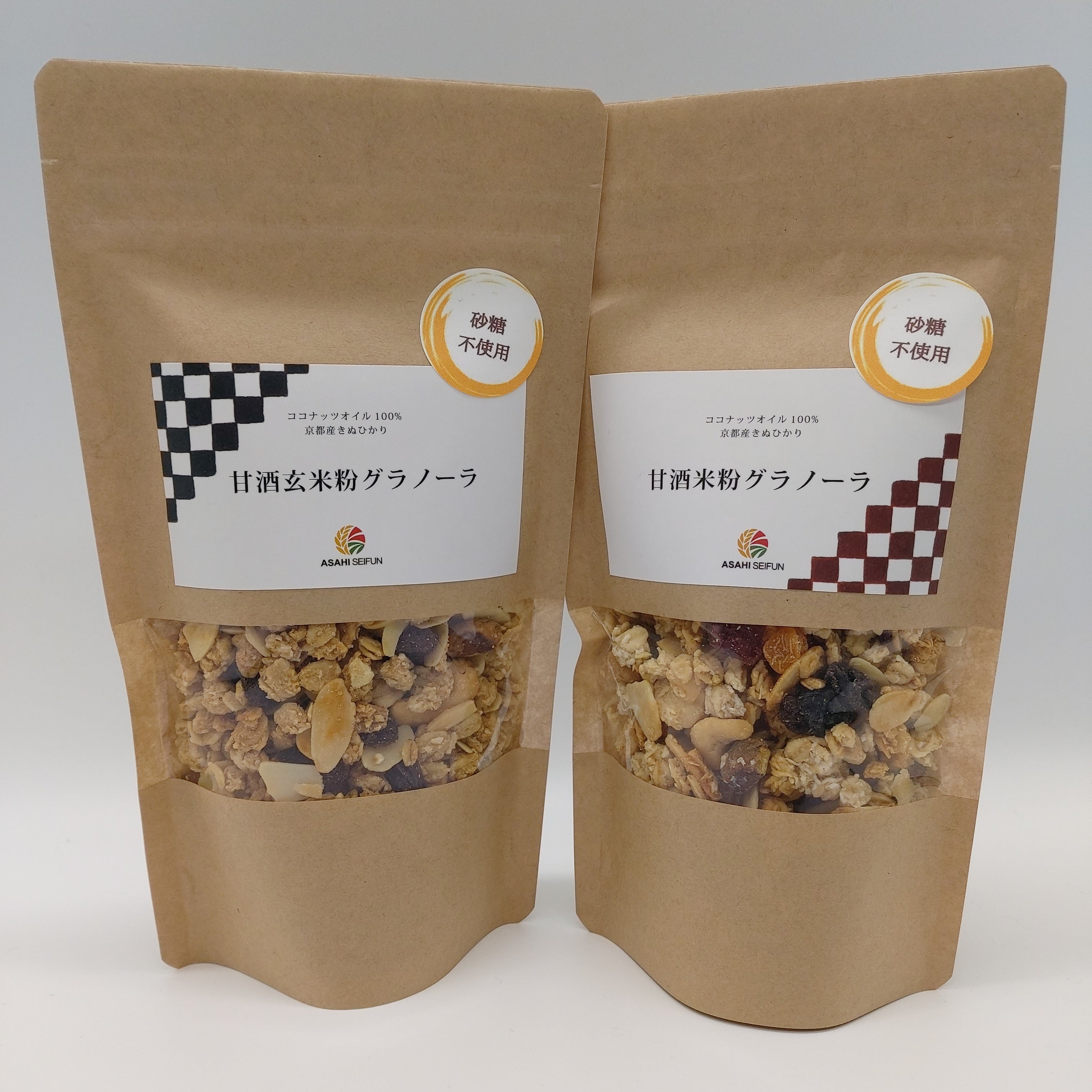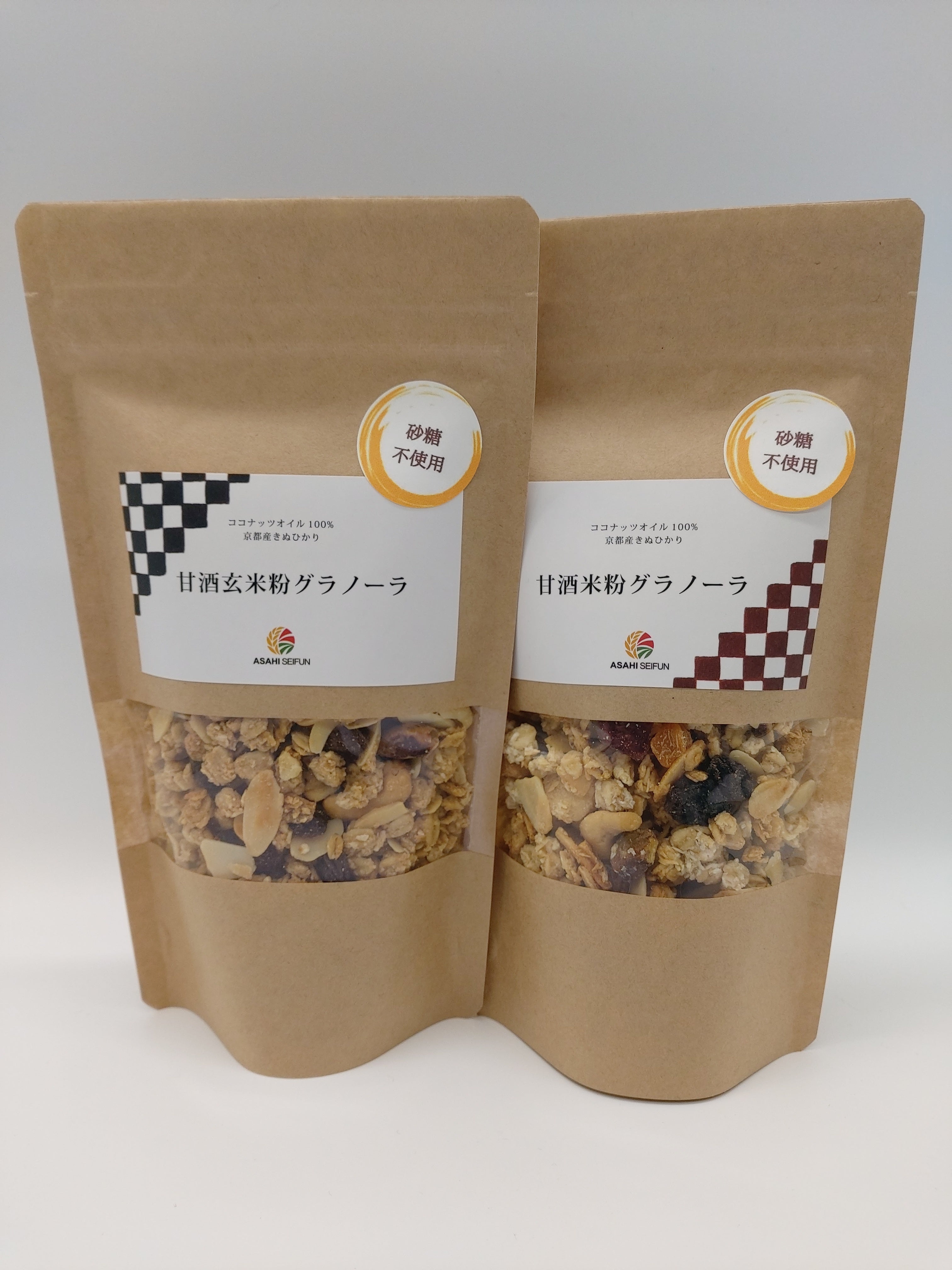 甘酒米粉グラノーラと甘酒玄米粉グラノーラがセットになっております。