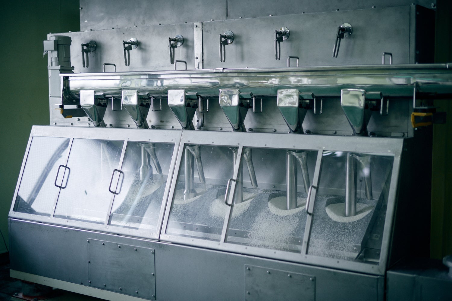 現在3代目となり、製造には日本に一台しかない朝日製粉所オリジナルの密閉型胴搗き粉砕機を導入。異物混入がなく、設備環境や衛生面などでも安心安全な製粉を可能としています。