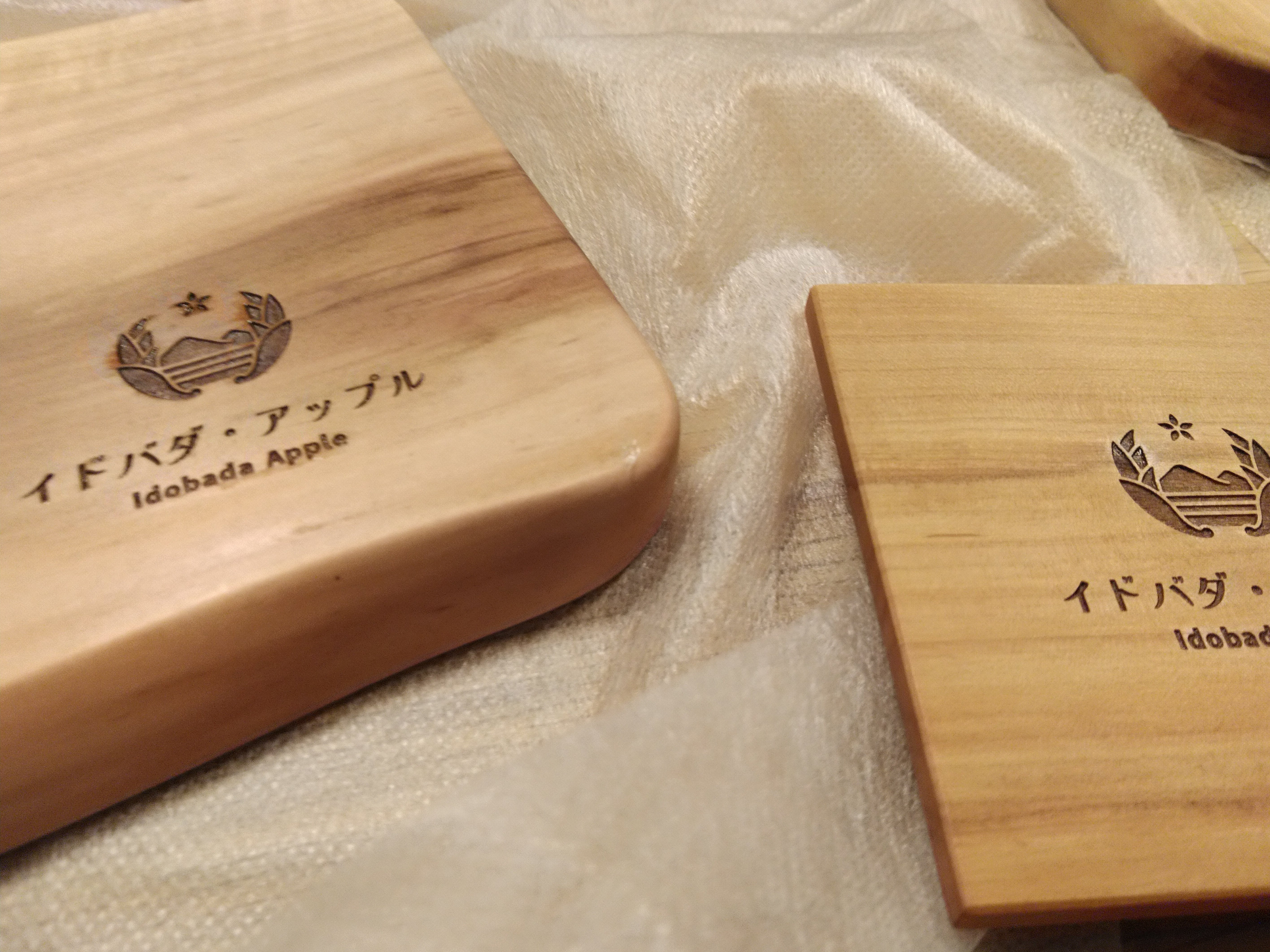12月19日にできたばかりのこのカッティングボードは、一本のりんごの木(15~20年)からせいぜい1~2枚しか作れないというもので、更にイドバダ・アップルのロゴがが入った史上最初の商品です。また追って、活動報告させていただきます!