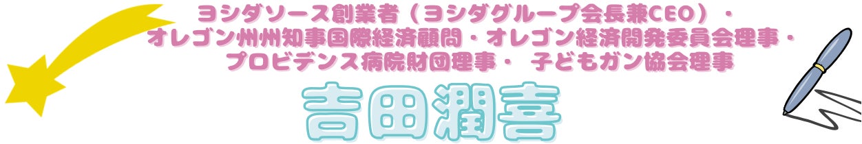 1969年に単身渡米。自家製秘伝のタレをベースにしたヨシダソースを生産販売し、アメリカンドリームの体現者となる。2005年にNewsweek誌で「世界で最も尊敬される日本人100」に選ばれ、「外務大臣賞」を受賞。 現在、ヨシダグループの会長職務と講演などで、世界中を飛び回る日々を送っている。