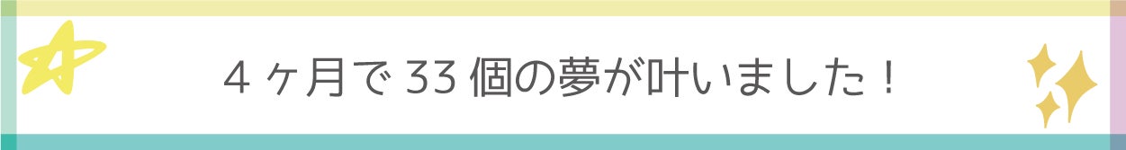 そして、美沙先生に教えていただいた夢の叶え方を実践してから、4ヶ月で33個の夢を実現することができました。