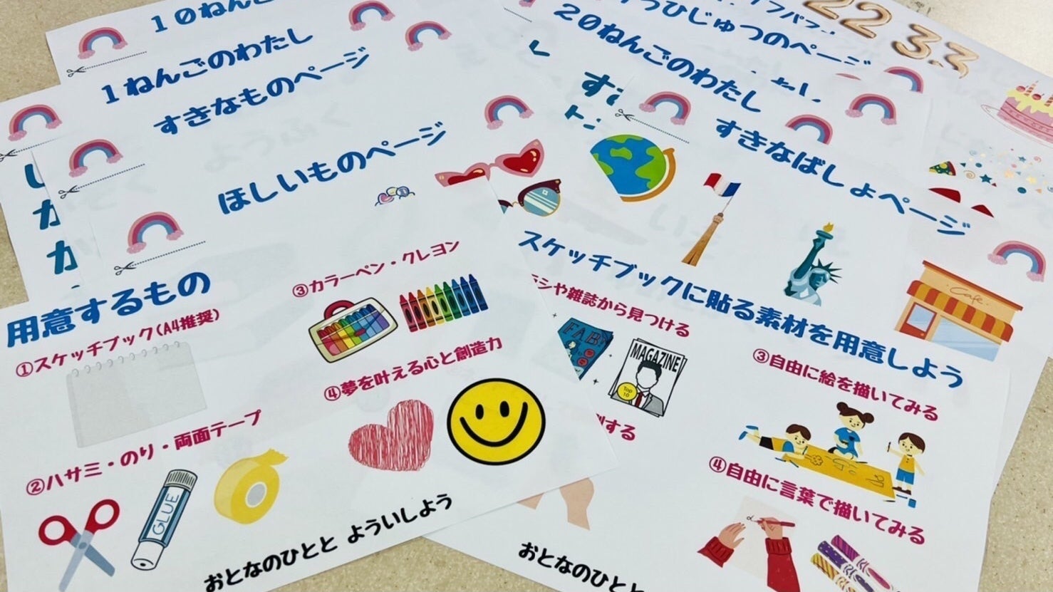 これまではノートや手帳をベースに作ってきましたが、今回はなかなか時間が取れないママにも作っていただけるよう、お子さんと一緒に作れるキットを考案しました。