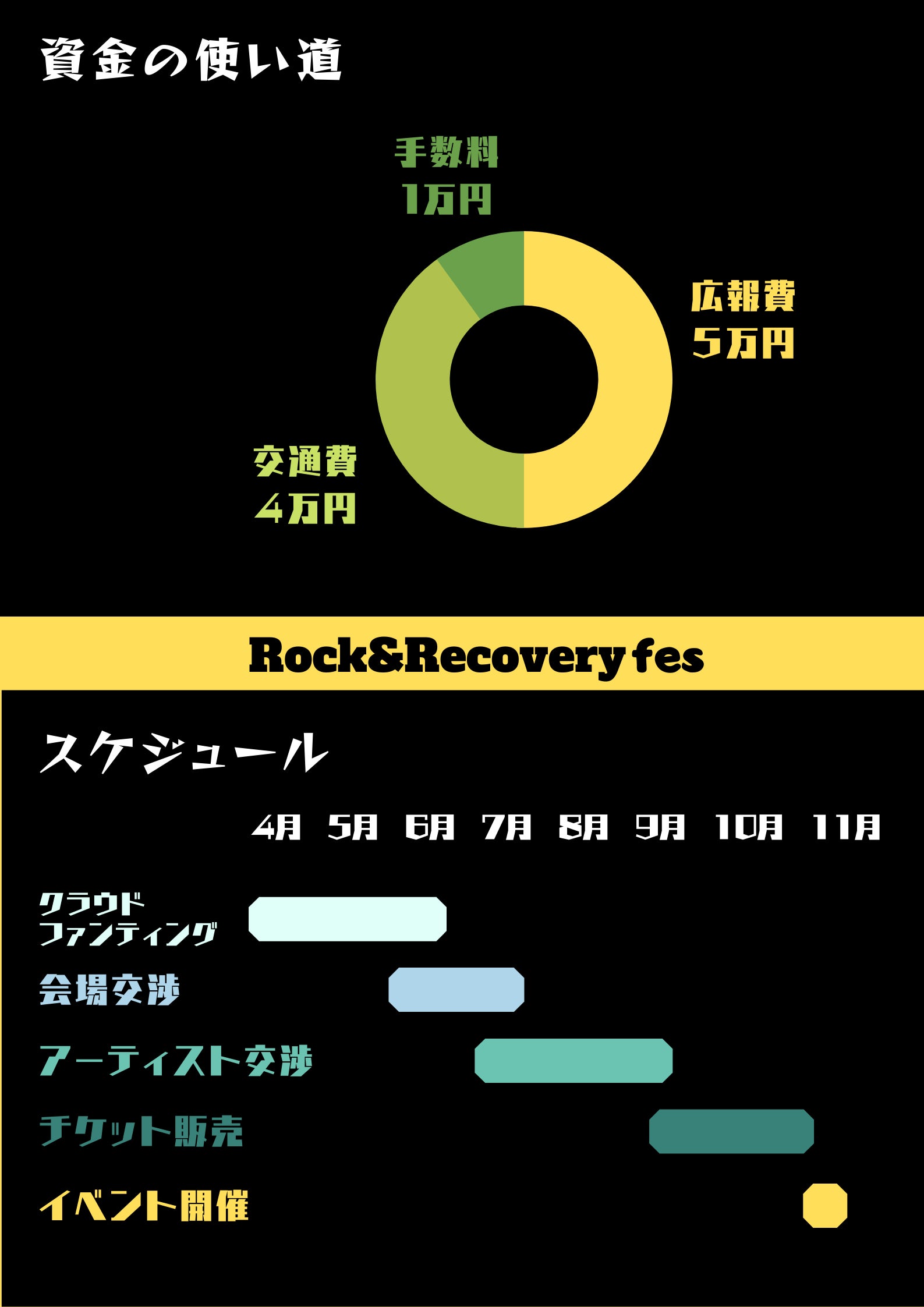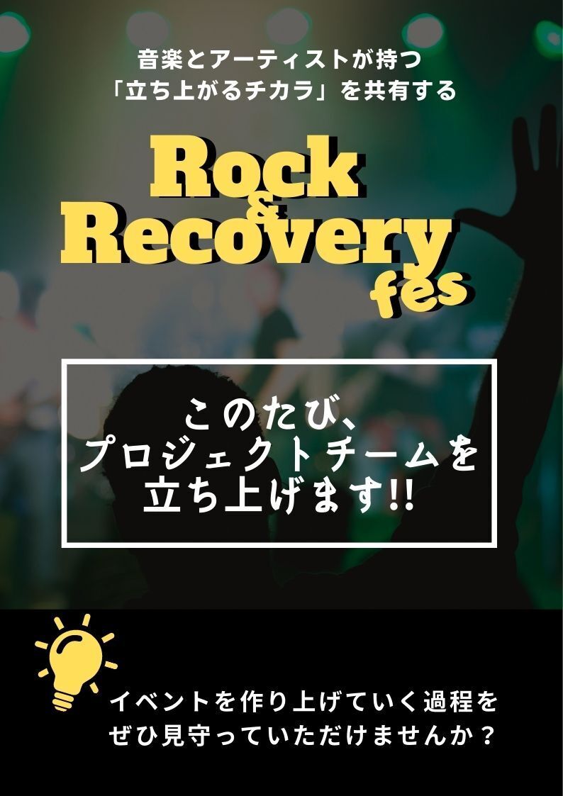 今回は「Rock&Recovery fes」という音楽イベント開催に向けての「プロジェクトチーム立ち上げ」のためのクラウドファンディングになります。