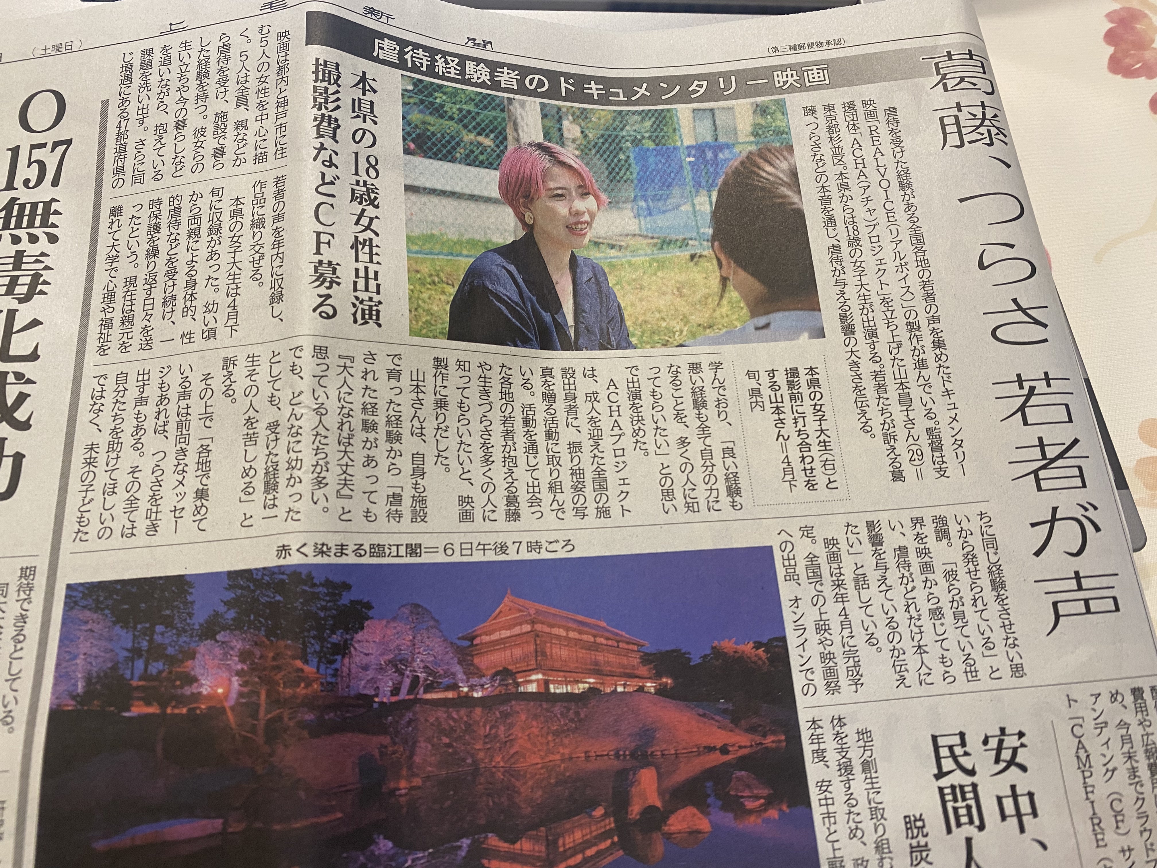 【ドキュメンタリー映画「REALVOICE」上尾新聞に掲載して頂きました】