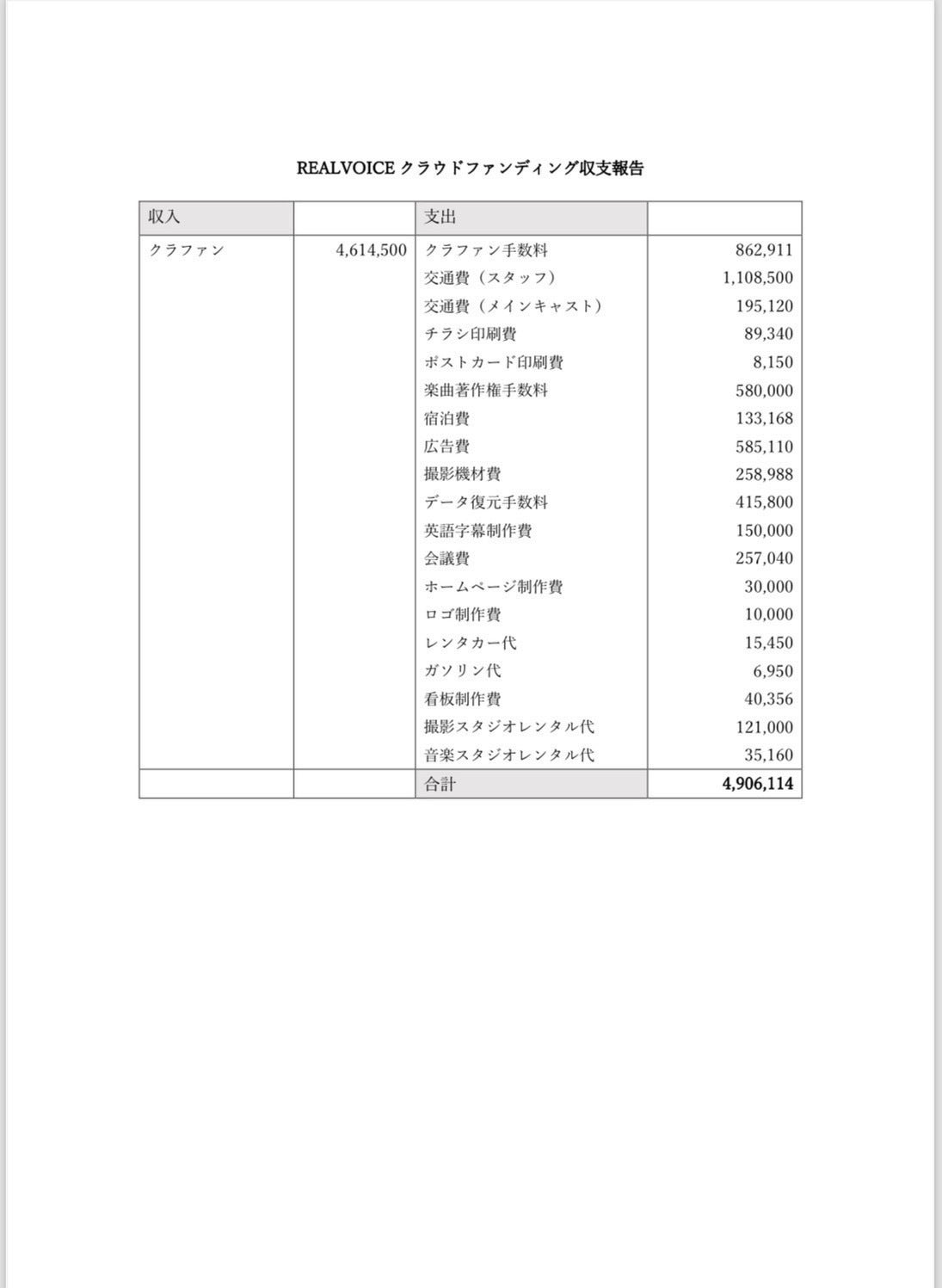 そして、クラウドファンディングでご支援頂きました資金の収支報告になります