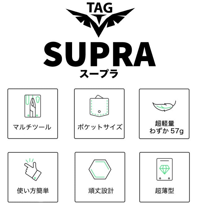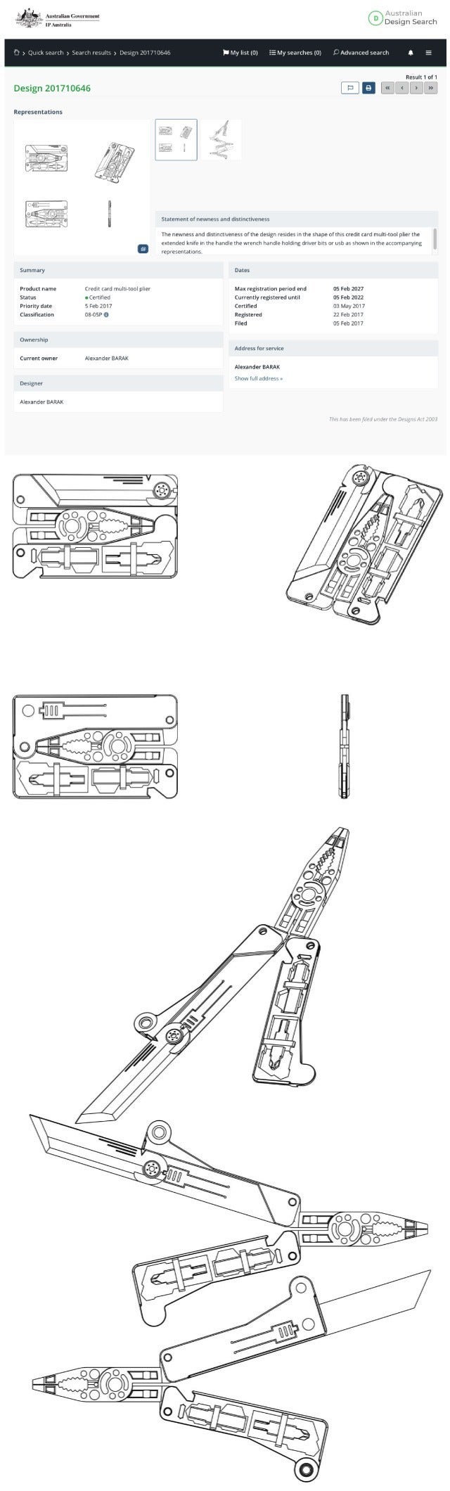 SUPRAはオーストラリアにおいて意匠権を取得している独自のデザインをしたマルチツールです。その他、USA、中国でも意匠権を取得しています。