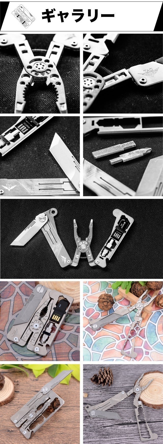 - ● クレジットカードサイズの超小型プライヤー付きマルチツール