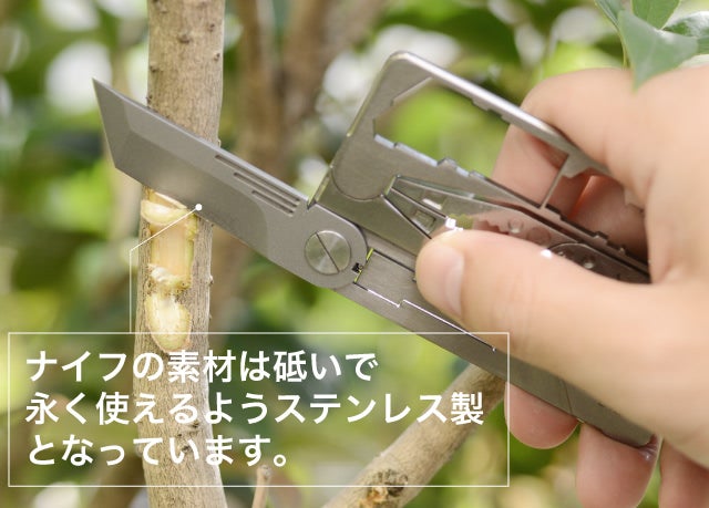 ナイフ部分は永く使っていただけるように、丈夫で砥ぐことができるステンレス素材を使用しています。