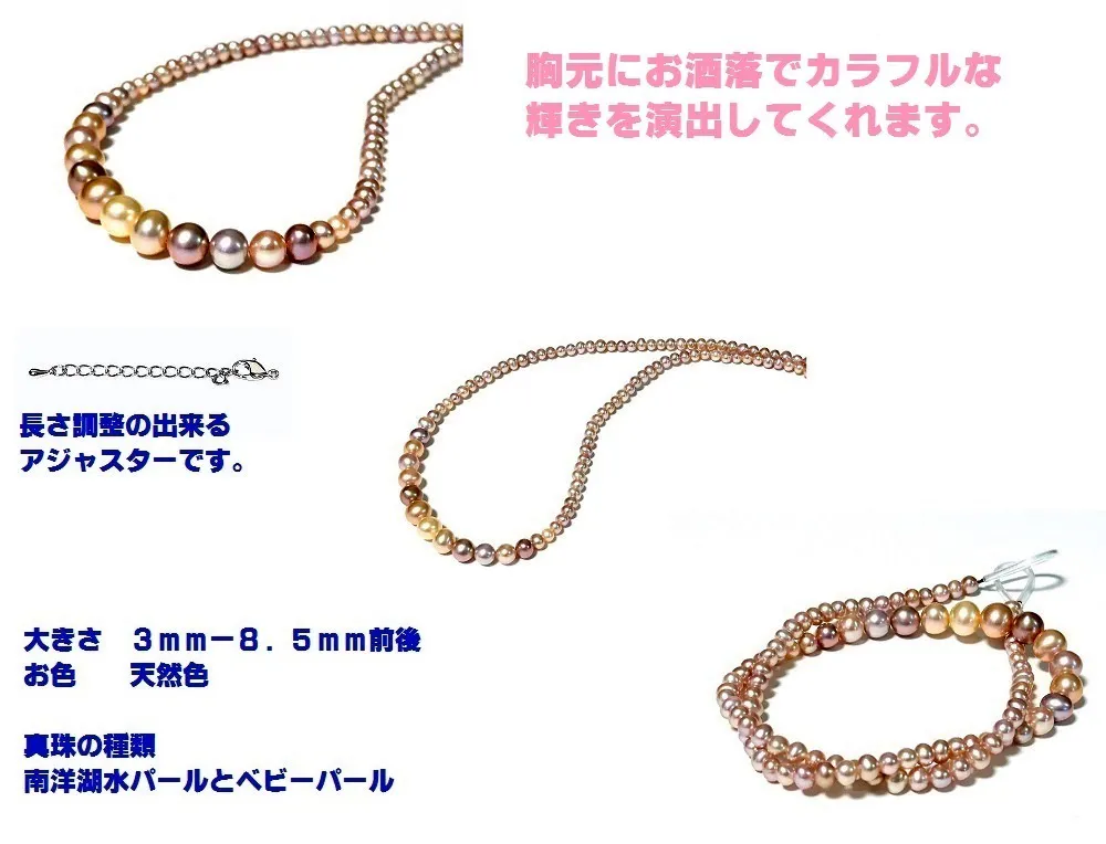 グラデーションパールネックレス3mm-8.5mm