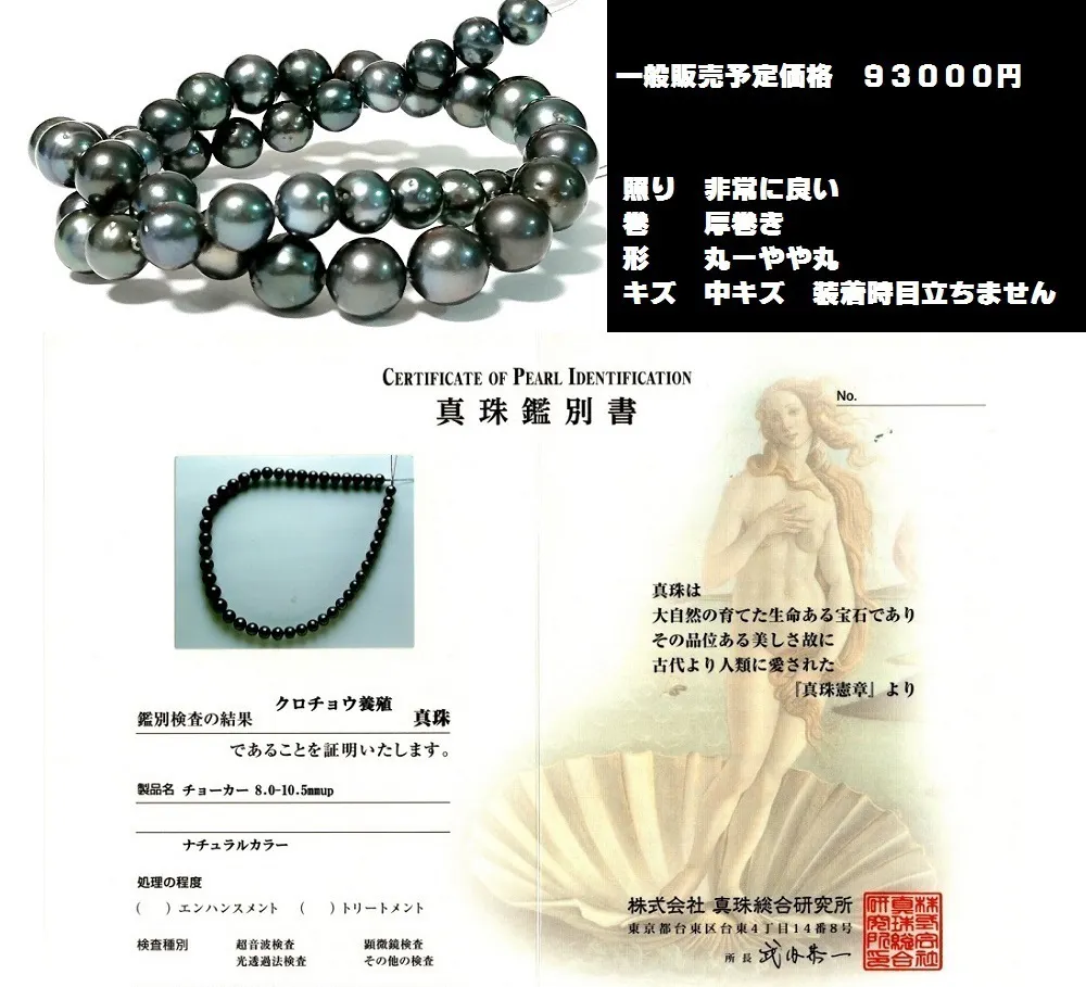 パールネックレス8mm~10.5mm前後 信頼の鑑別付