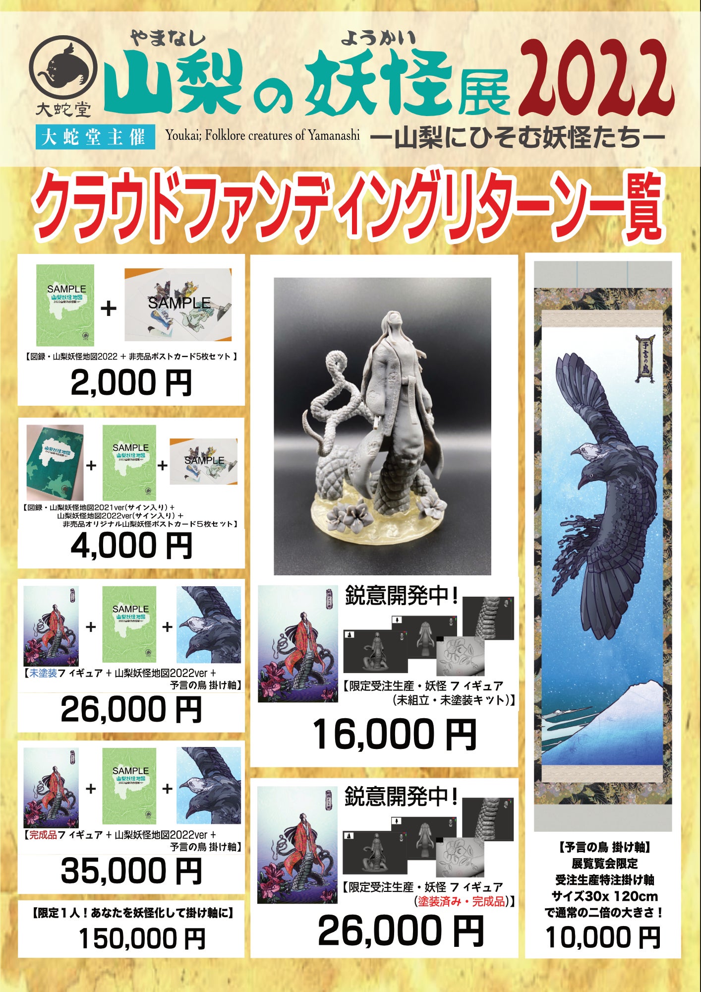『山梨妖怪100体の「山梨の妖怪展2022」を開催したい!』ご注目いただき、ありがとうございます。主催者の大蛇堂です。