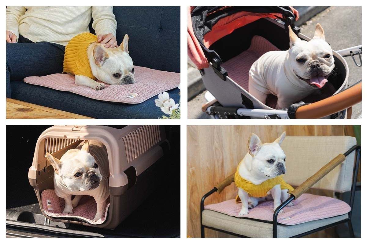 カフェで愛犬も椅子やソファに座れます。ピンク/カーキ/チャコールグレーの3色展開