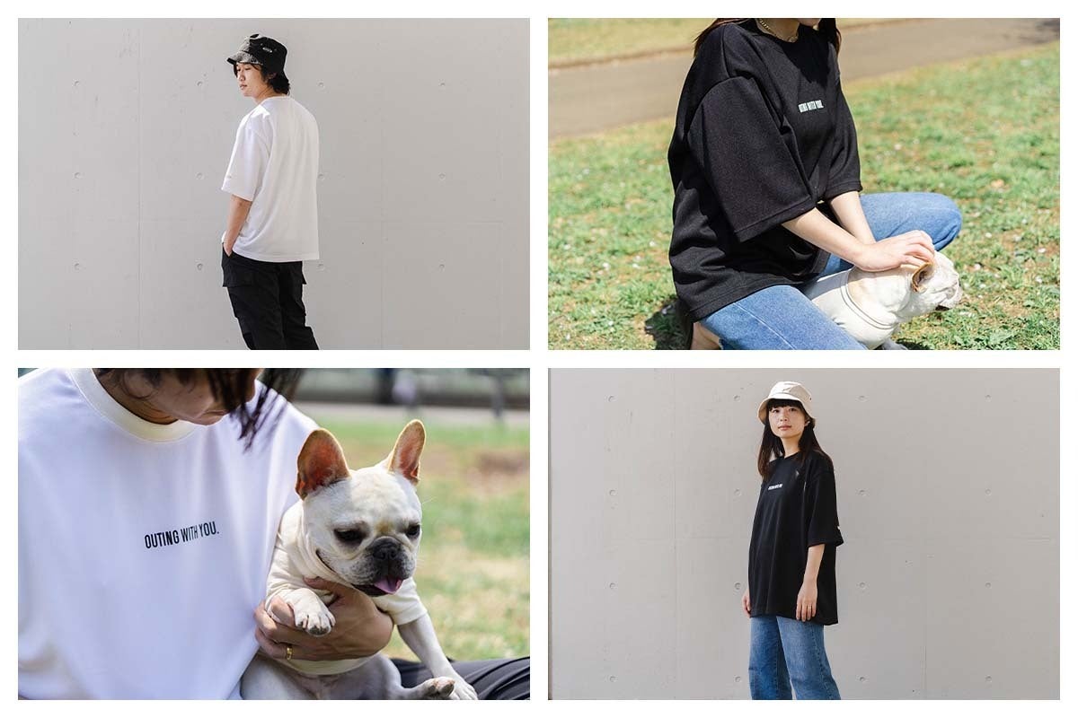 リラクシーシルエットのTシャツ。ジャージ素材を使用しているので、アクティブな愛犬とのお出かけに最適です。