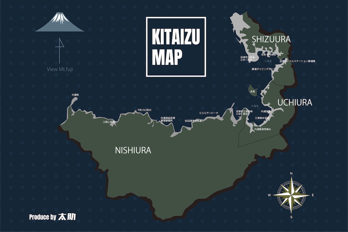 沼津市の南部地域は、地元では三浦地区(さんうらちく)と呼ばれ長年親しまれてきました。沼津市?、サンウラ地区?と言われてピンとこない。まだまだ知らない人が多い私たちの地元エリアですが、位置的に伊豆の入り口だし北伊豆って呼んだ方がみんなわかりやすくない?ということで私たちはこのエリアを北伊豆と呼び出しました。