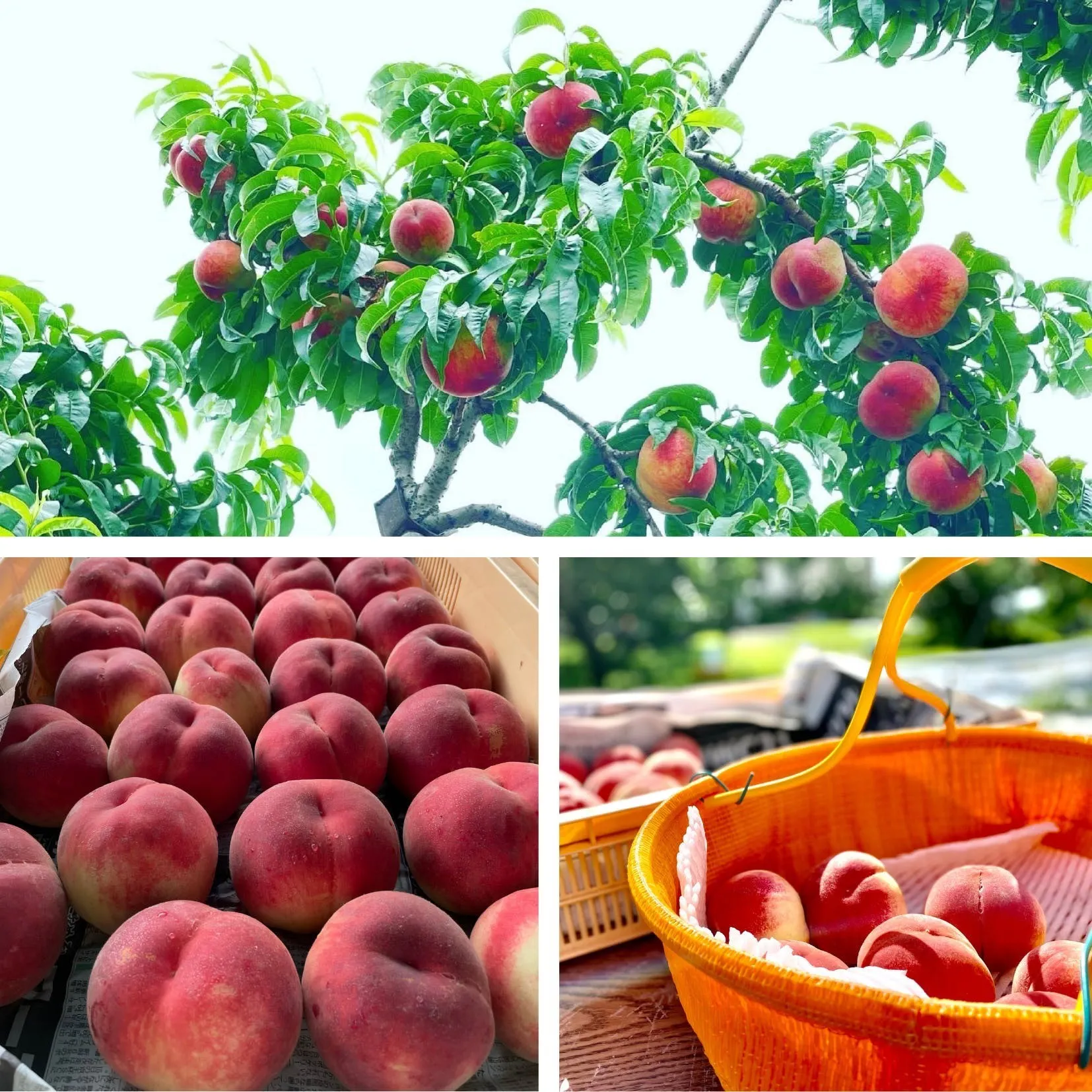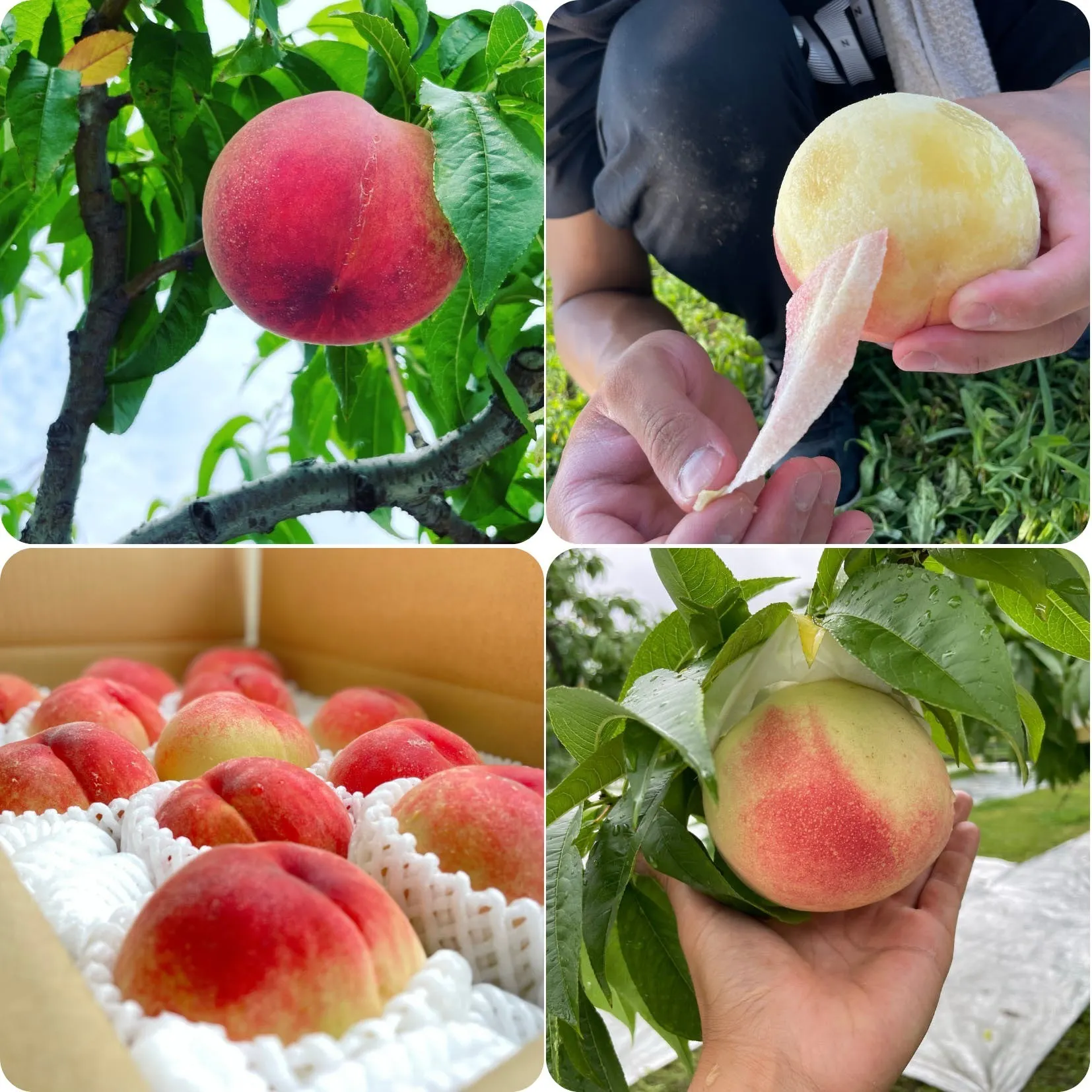 2022/06/06 21:002022/06/06(月)作業内容:桃の摘果桃の木には何もしないと “約1兆個” の桃がつくと言われています。ただし、そーしてしまうと栄養が分散されてしまう為、小さくて美味しくない桃ができてしまいます。そこで、この “摘果”をおこないます。“摘果”とは、木から実を間引く作業になります。1本の木に成る実を300個程度に減らして、より栄養素が濃く流れるようにして、1つ1つの実を大きくジューシーな物にする為に行います。実も夏が近づくにつれて大きくなり、今では手のひらに収まりきらないような桃までできています。これが後1ヶ月ちょっとで皆様のお手元に届くような立派な桃に育ちます!今後の彼らの成長にご期待ください。 もっと見る