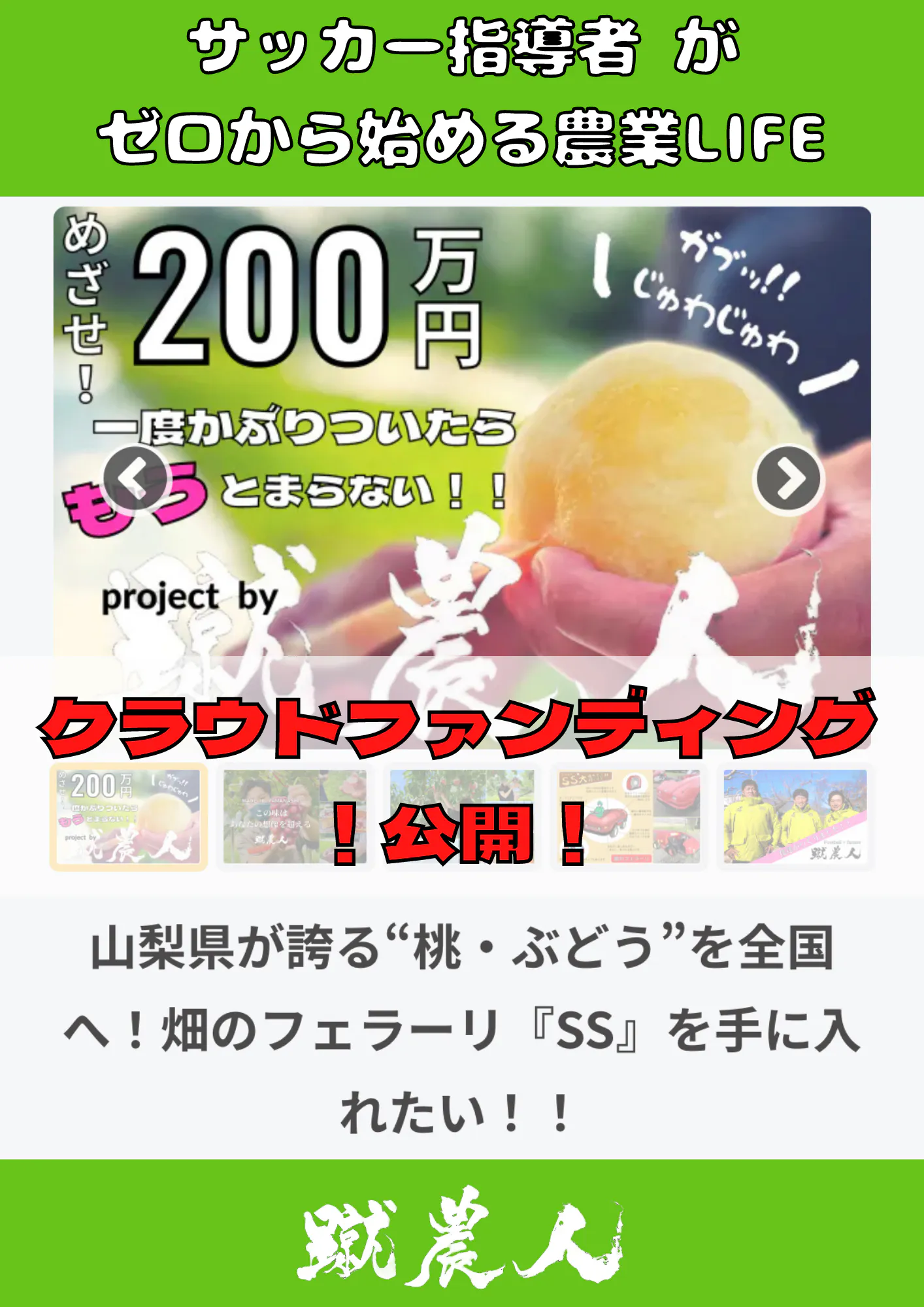 【蹴農人 クラウドファンディング担当 桃の木切ッ太郎】です!