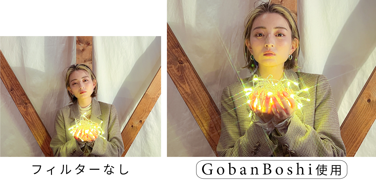 GobanBoshiは、そのカットに映る光だけを「クロス状に伸ばす」効果のあるフィルター。