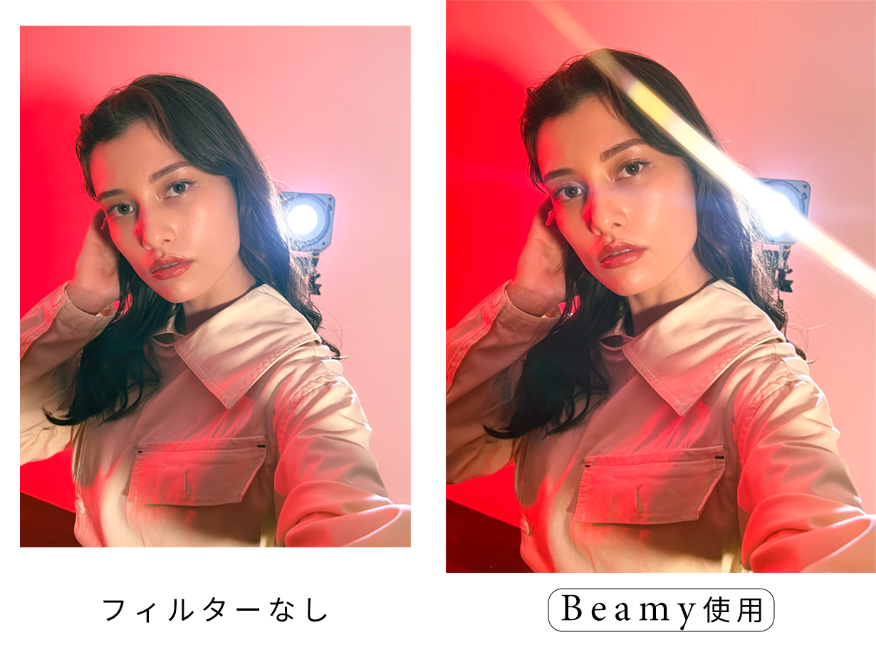 Beamy(ビーミー)は、そのカットに映る光だけを「水平に伸ばす」効果のあるフィルター。
