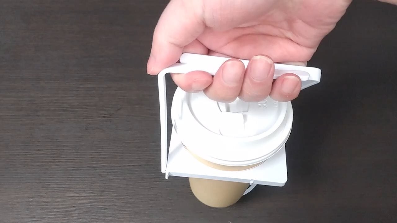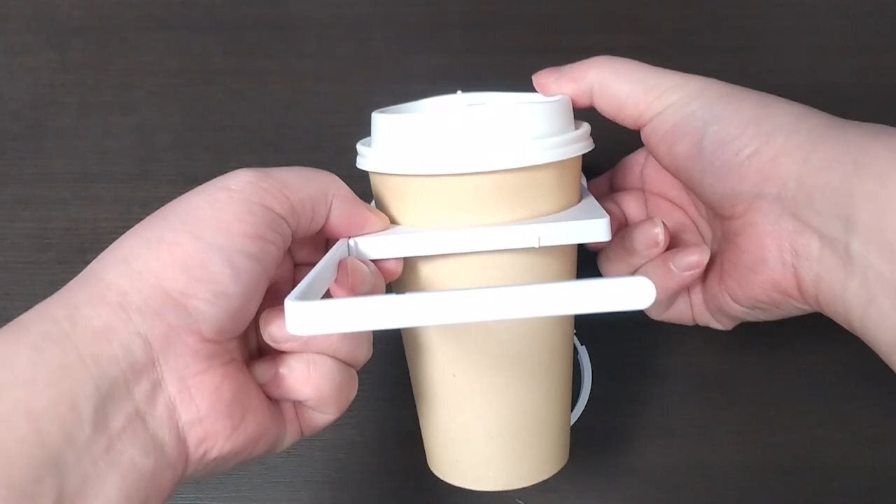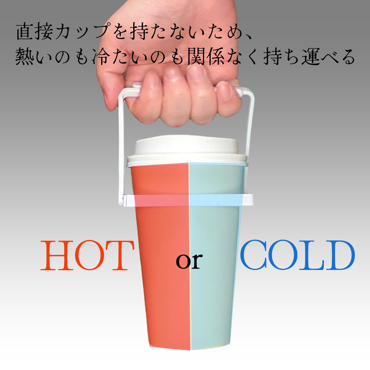 雨が降っている時、荷物で手が一杯な時、空いてる手が無くコーヒーを持ち帰るのは一苦労です。本製品は、傘、または、他の荷物などと一緒に持つことができます。