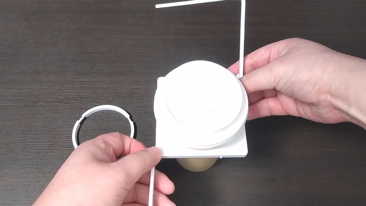 ⑥もう一度、Stock Ring Cardの穴にカップを固定します。