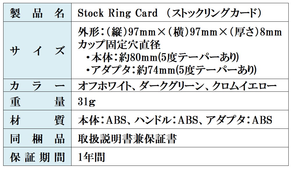 Stock Ring Cardのサイズは縦95mm×横95mm×厚さ8mmと小さく薄い形状です。