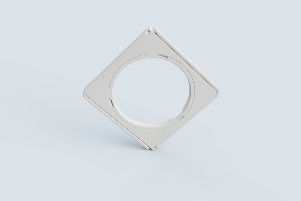 ⑤そのような場合は、Stock Ring Cardの穴の内側に固定されているアダプタを外すことで、穴のサイズを約74mmから約80mmに広げることができます。