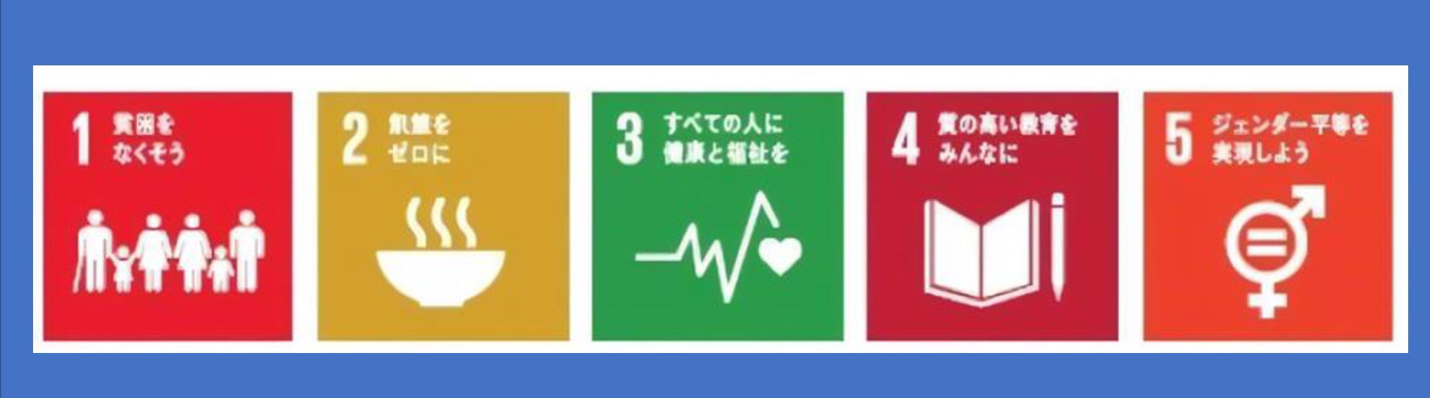 私達のプロジェクトは、SDGs の目標1「貧困をなくそう」目標2「飢餓をゼロに」目標3「すべての人に健康と福祉を」目標4「質の高い教育をみんなに」目標5「ジェンダー平等を実現しよう」を目指す普遍的な活動です。 この活動が、少子化・産後うつ・虐待・思春期の性行動・不妊症、そして産婦人科診療所の減少等の問題に、大きなムーブメントを起こすことになると考えています。