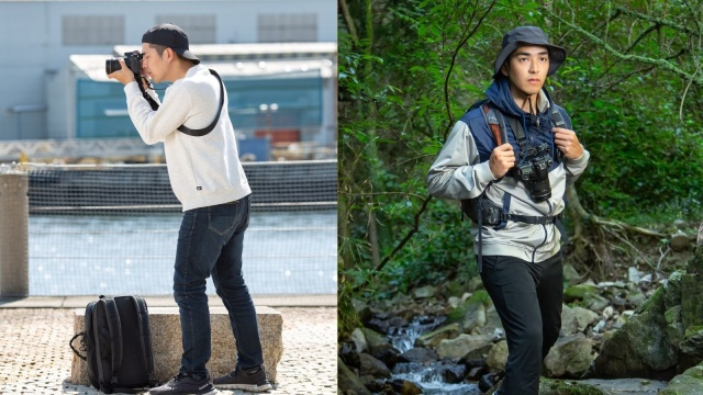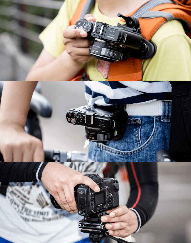 このCoreSlingならリュックを担いだままでも素早く撮影できますが、