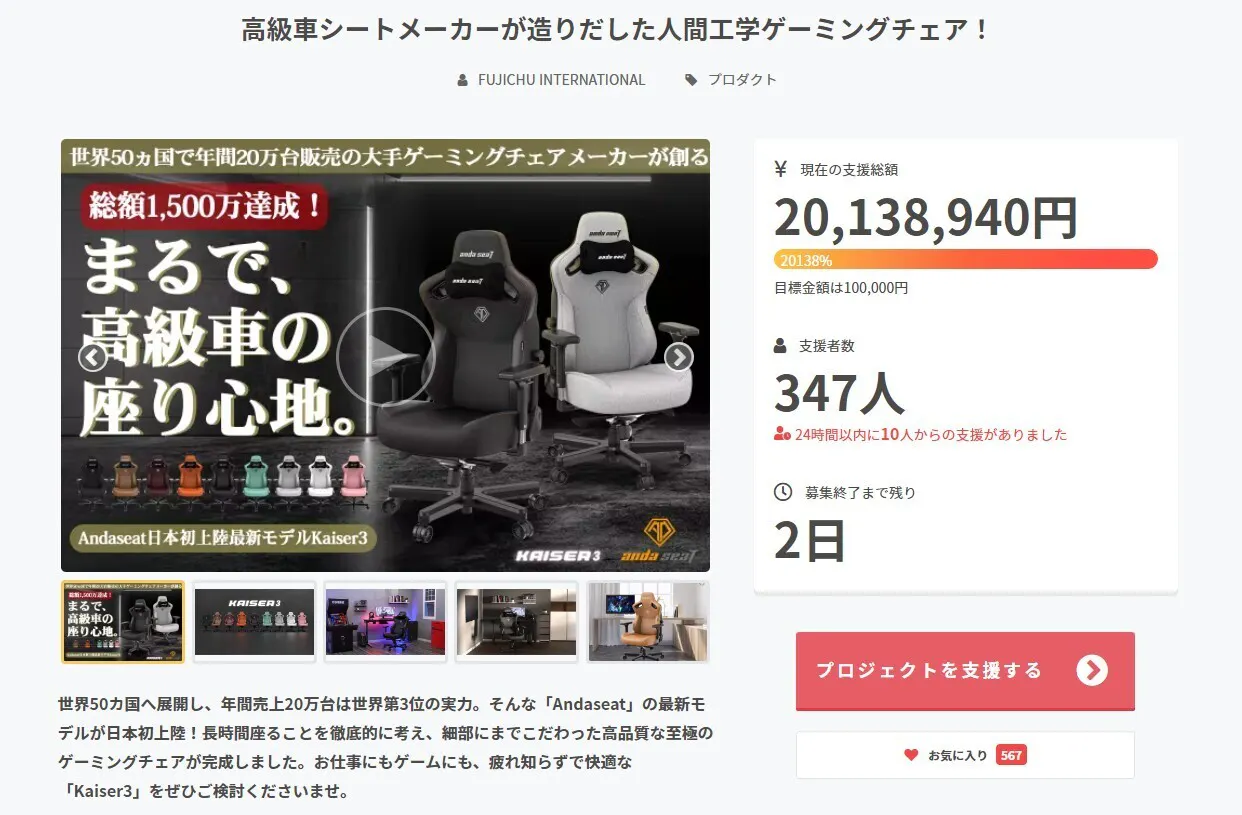 プロジェクトの支援総額が2,000万円を突破しました!!