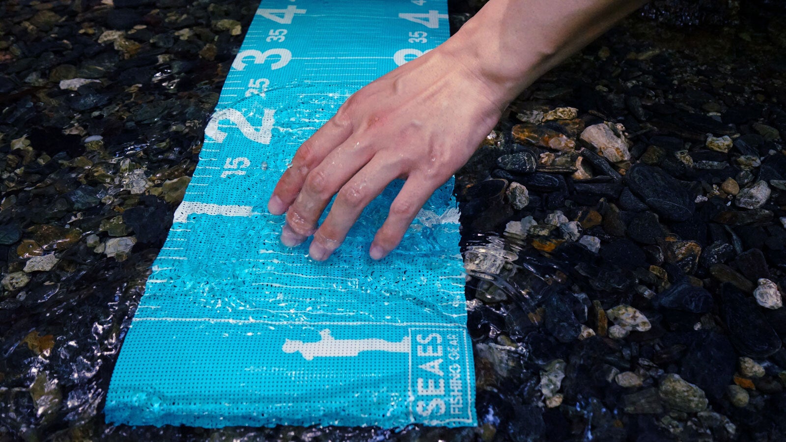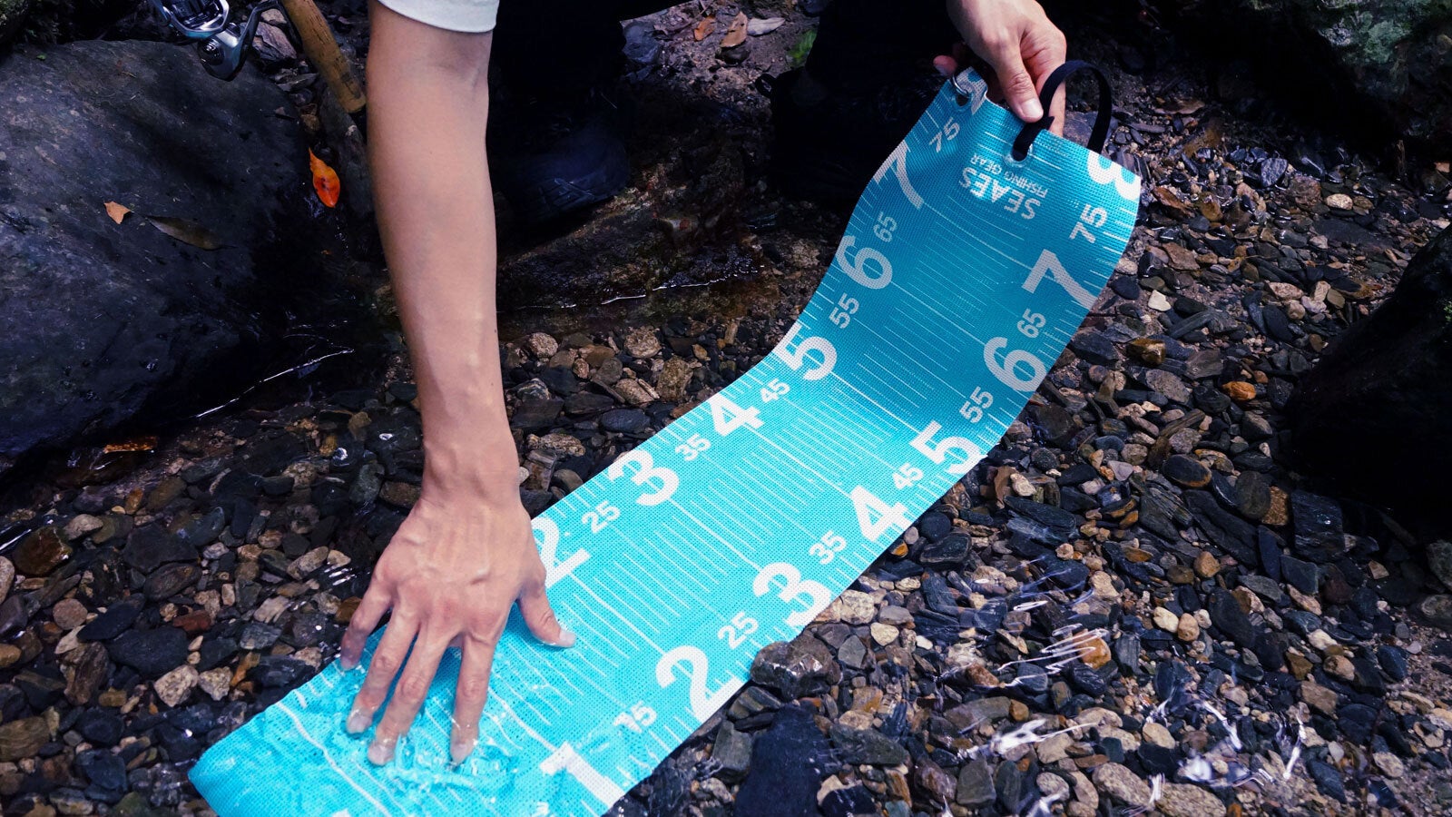 魚を計測する際は、一度メジャーを水に浸してから使用することで魚への負担を極限まで下げられます。リリースする場合は魚をできるだけ早く水に戻してあげてください。