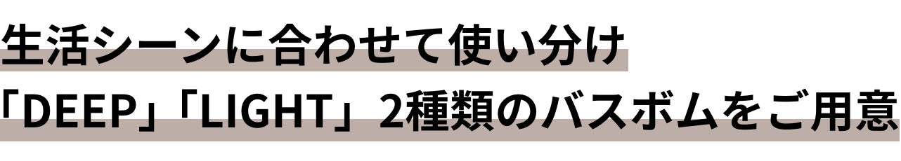 音と香り・豊富な天然由来成分に彩られた2種類のバスボムが、平日・休日さまざまな生活シーンで「休む時間」をサポートし、日常をアップデートします。