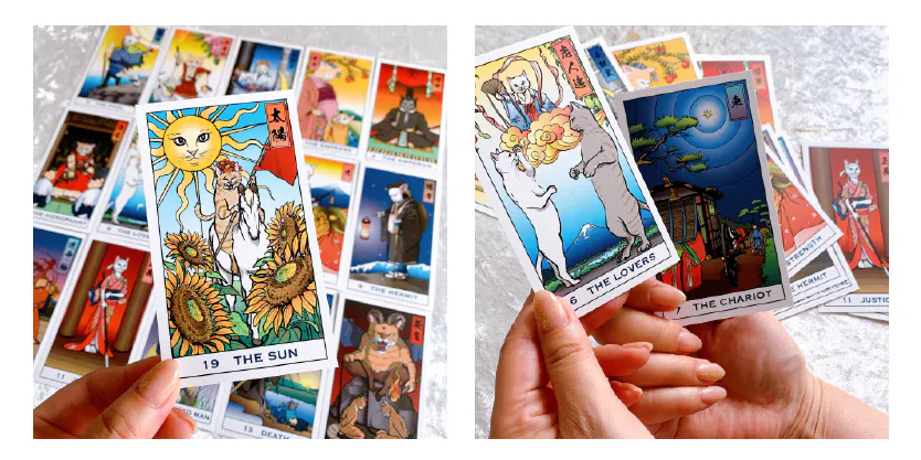 タロットを使ったことがない方にも、タロットプロの方にも、ねこと一緒にカードを楽しんでほしい!と考え、『今はむかし にゃんこたろっと』制作プロジェクトをスタートさせました。