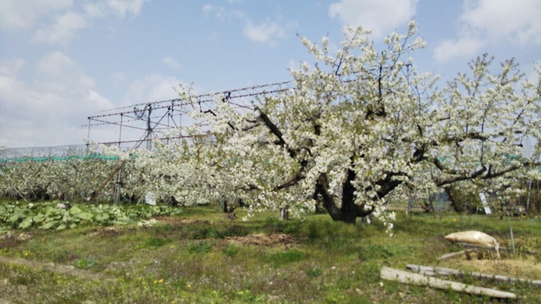 佐藤錦の食べ頃さくらんぼの花が満開です。今日は、果物の食べ頃のお話をしたいと思います。果物や野菜の収穫時期の目安を知る方法には2つあります。一つは開花期から何日かと、積算温度が何度かの二つですさくらんぼで一番ポピュラーな佐藤錦は開花から「55日頃」が美味しいと言われています。気象条件や園地により多少の前後はあると思います。ただ、積算温度も参考にします。我が家の体験収穫予定園地は25日頃に満開になりました。開花から推測される佐藤錦の食べ頃は、6月20日頃となりますが、低温で生育が遅れれば5~6日、遅くなります。晩生の紅秀峰は佐藤錦より4日ほど早く花が咲き、収穫は7~10日位遅くなります。実が大きい品種は、成長に時間がかかるのです。さくらんぼの花を見ながら、今年の食べ頃を推測してみるのも面白いと思います。あがすけ農園