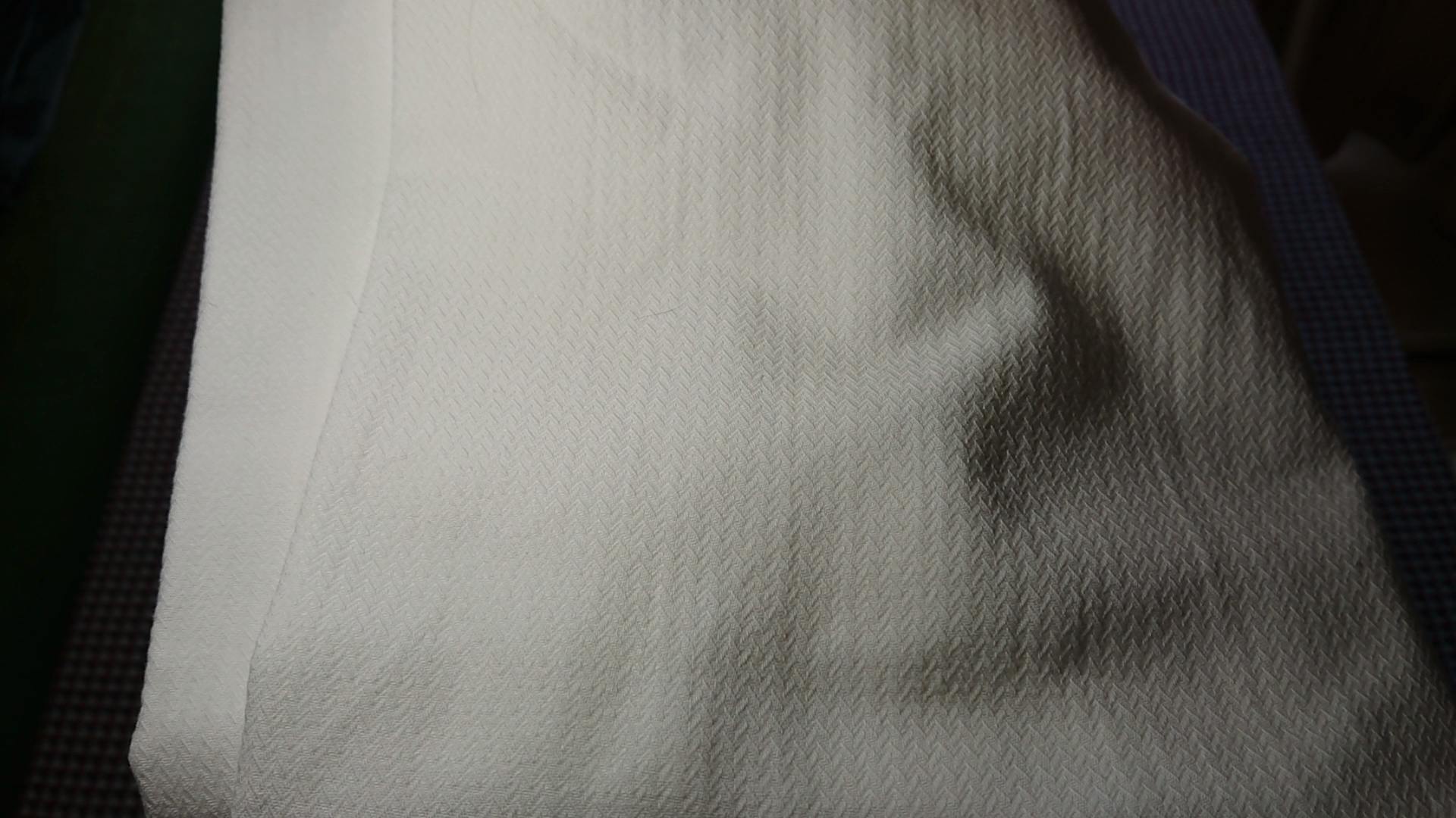 MA0166 の生地説明です。経緯20/1の綿糸を使用してドビー織機で模様を織り上げ、軽くワッシャーをかけて柔らかみのある風合いの良い生地に仕上げました。定番の白は光を受けたときの陰影をより一層楽しめるので、生地本来の表情と質感を生かしてものづくりいたしました。
