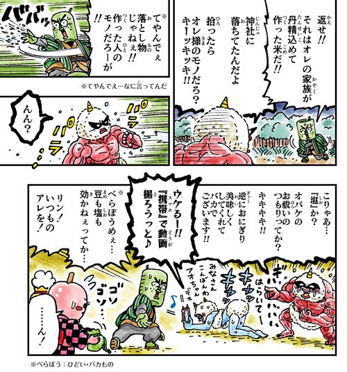 この絵本は『農家さん』たちが主人公で、ちょっぴりイジワルな『迷惑系の動画配信者』である鬼たちと闘い、自分たちの村を守るお話しとなっております!