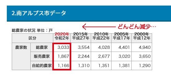 …しかし南アルプス市の農家さんは年々『減少』しております……