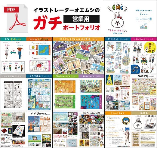 『イラストレーターオエムシがお仕事の営業用に使うガチポートフォリオ』を、PDF形式で御礼のメールに添付いたします!「普段、イラストのお仕事はこうやって頂戴しているのか~」というご参考になるかもしれませんw※もちろん、今まで上記4種類のリターンをご購入頂いたご支援者様にもお付けいたします♪