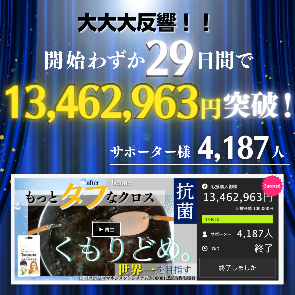 応援購入サービスMakuakeにて13,462,963円もの支援額を集めた曇り止めクロス、CAMPFIREにて再生産が決定いたしました!!
