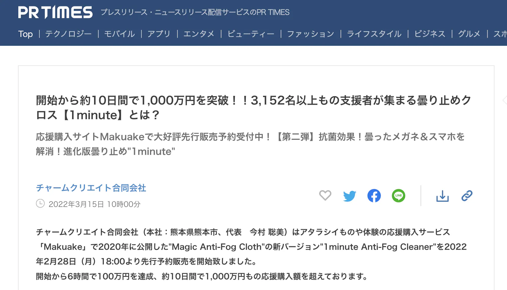 約10日間で1,000万円もの応援購入額を達成し、弊社でプレスリリースを配信いたしました!