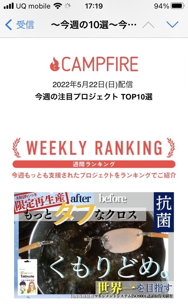 5/22配信のメルマガ“〜今週の10選〜今週支援が多かったプロジェクトをお届け!【CAMPFIREニュースレター】”です。