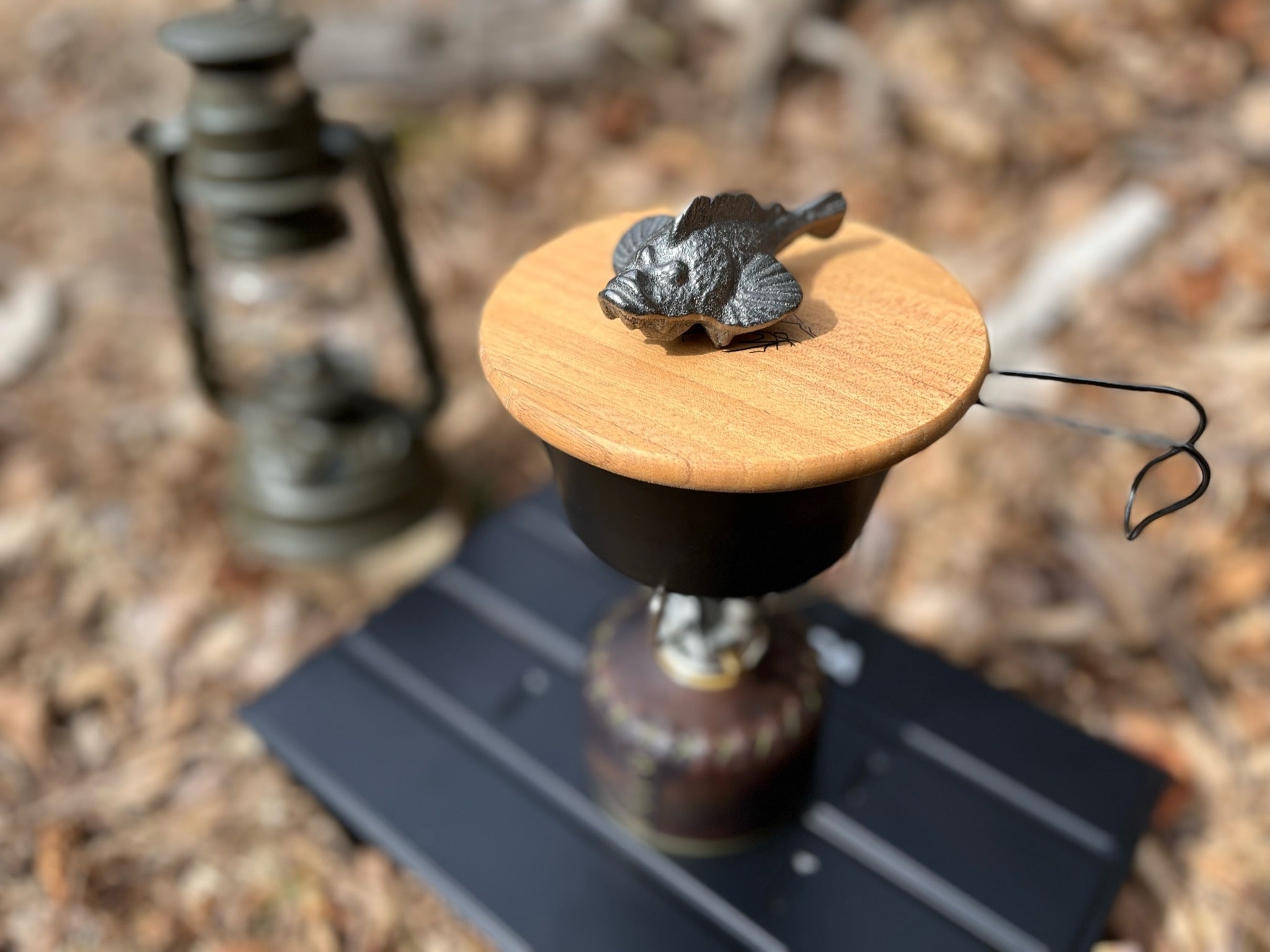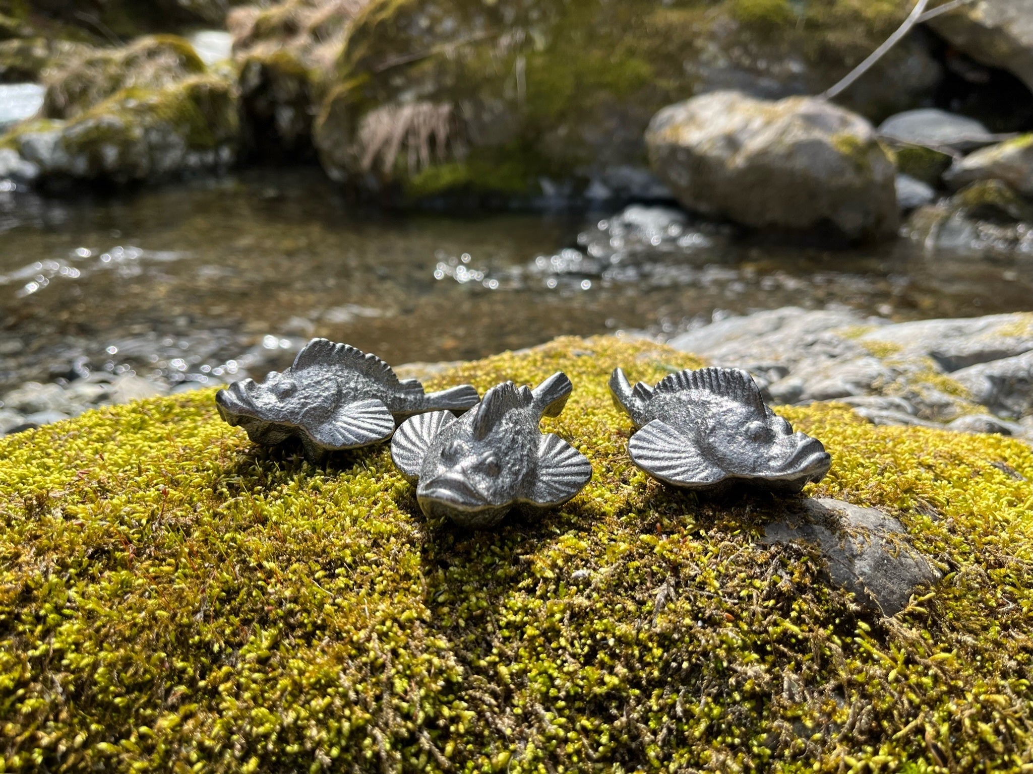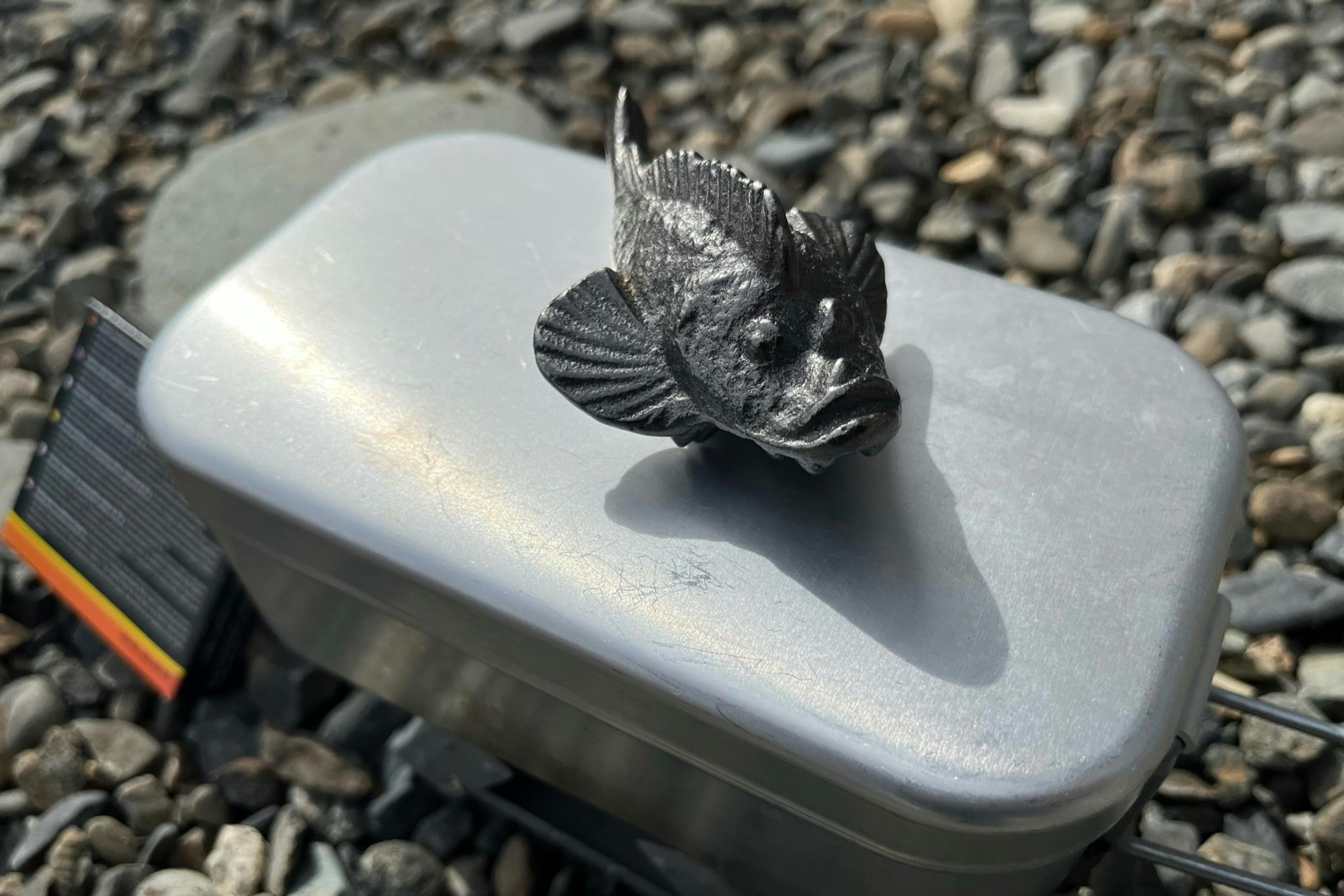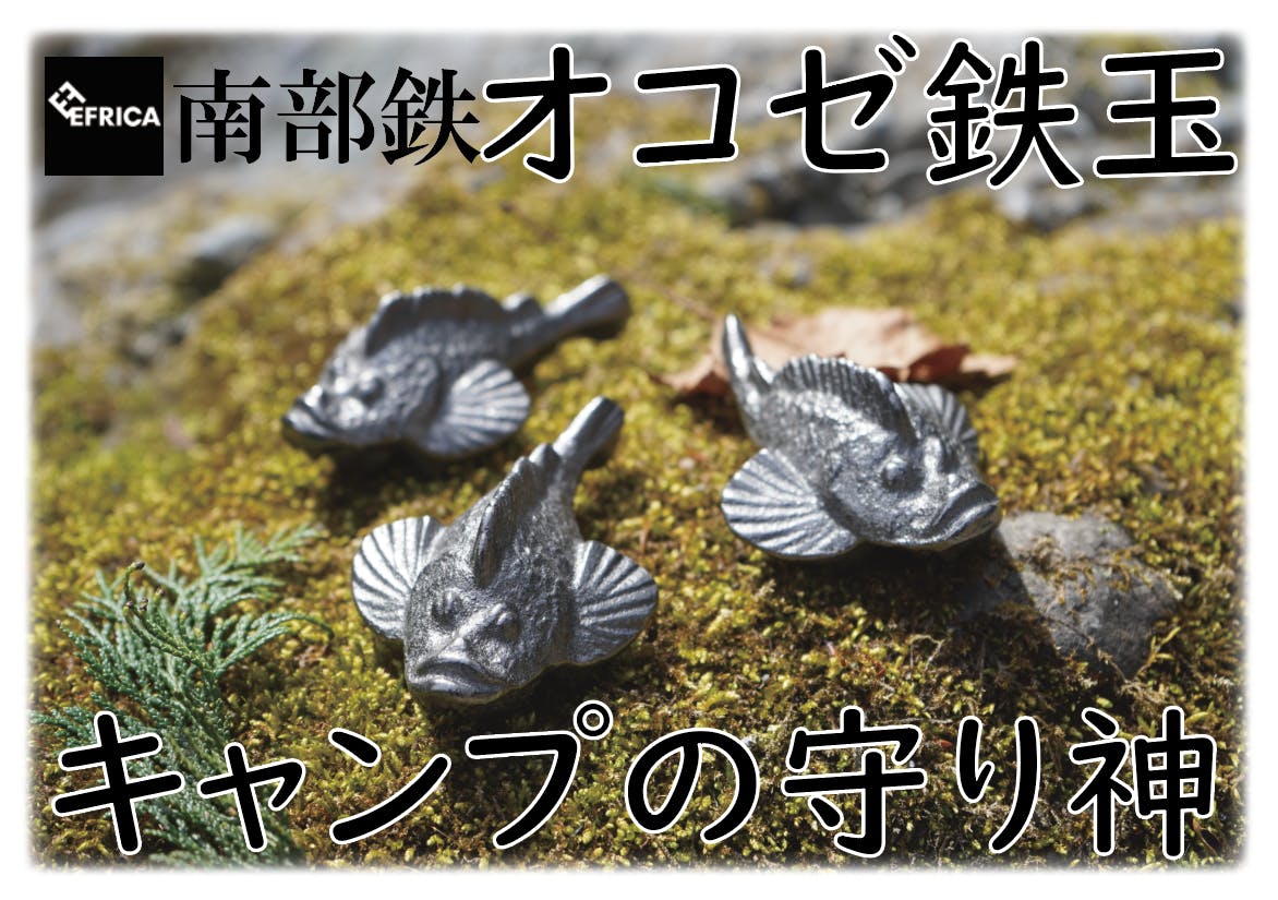 ブサイクながらも愛らしい姿なのでソロキャンプのテーブルにちょこんとのせておくだけで雰囲気が出ますし、マタギたちの携行品のように祈りを込めた御守にもなれば…という面白い作品です。ぜひ自分のオコゼ鉄玉に名前を付けてキャンプの守り神としていろいろなところに連れて行ってあげてください。