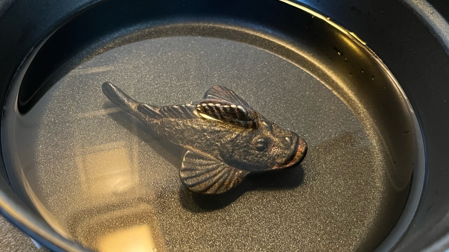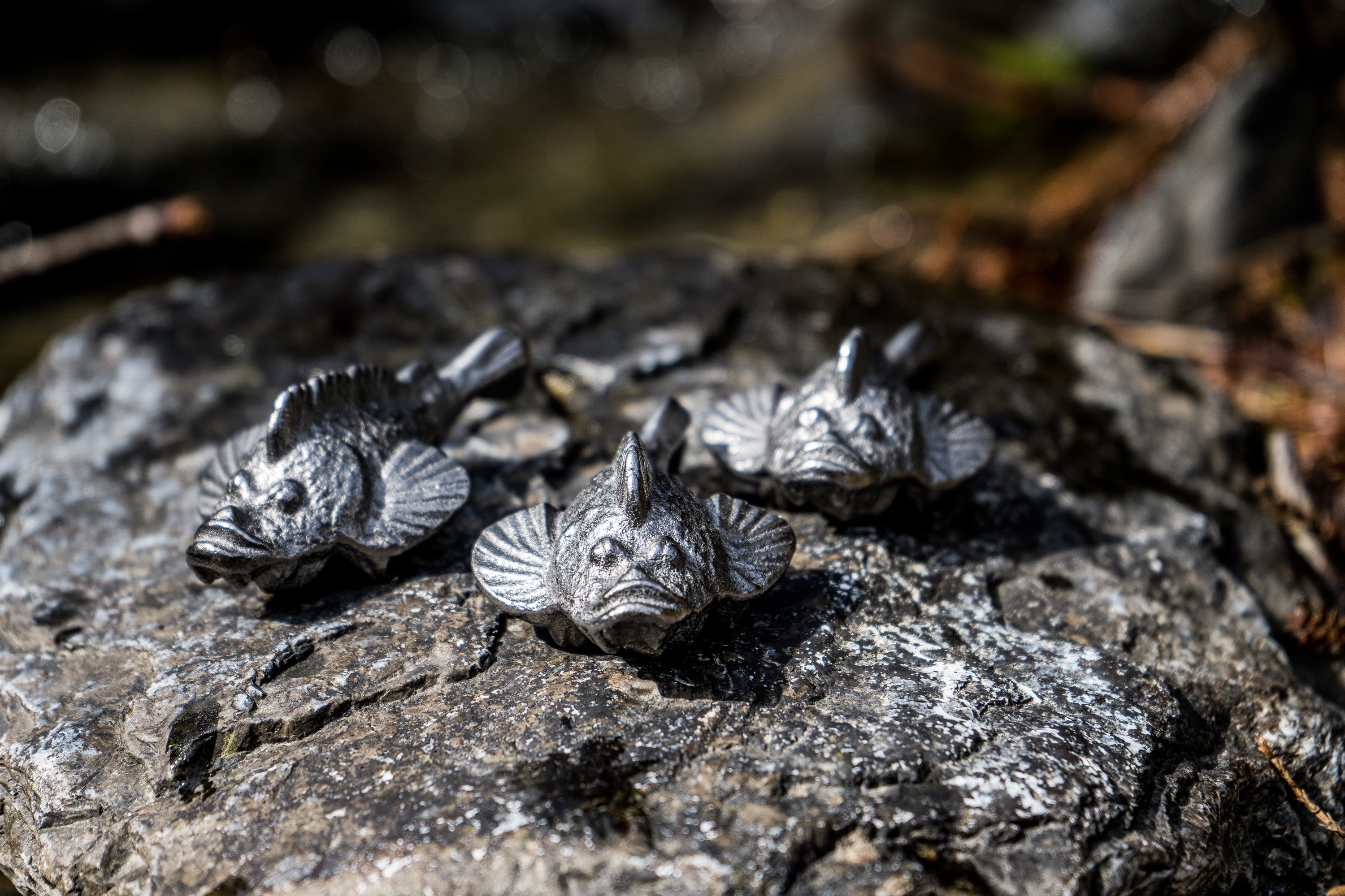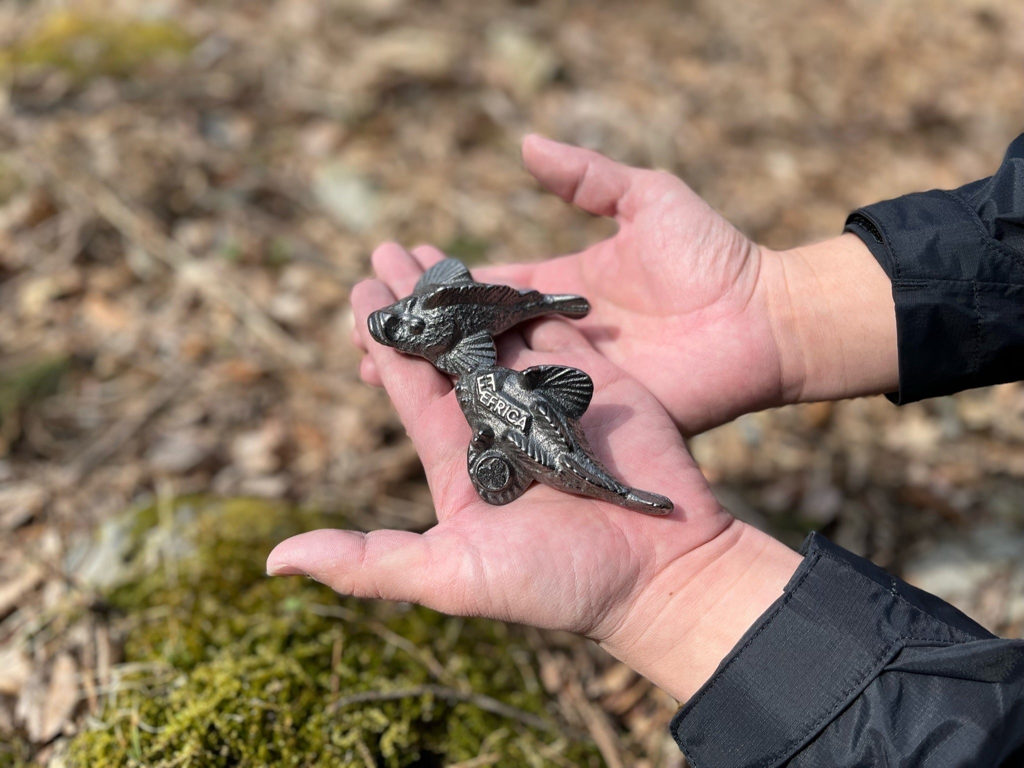 ブサイクながらも愛らしい姿なのでソロキャンプのテーブルにちょこんとのせておくだけで雰囲気が出ますし、マタギたちの携行品のように祈りを込めた御守にもなれば…という面白い作品です。ぜひ自分のオコゼ鉄玉に名前を付けてキャンプの守り神としていろいろなところに連れて行ってあげてください。